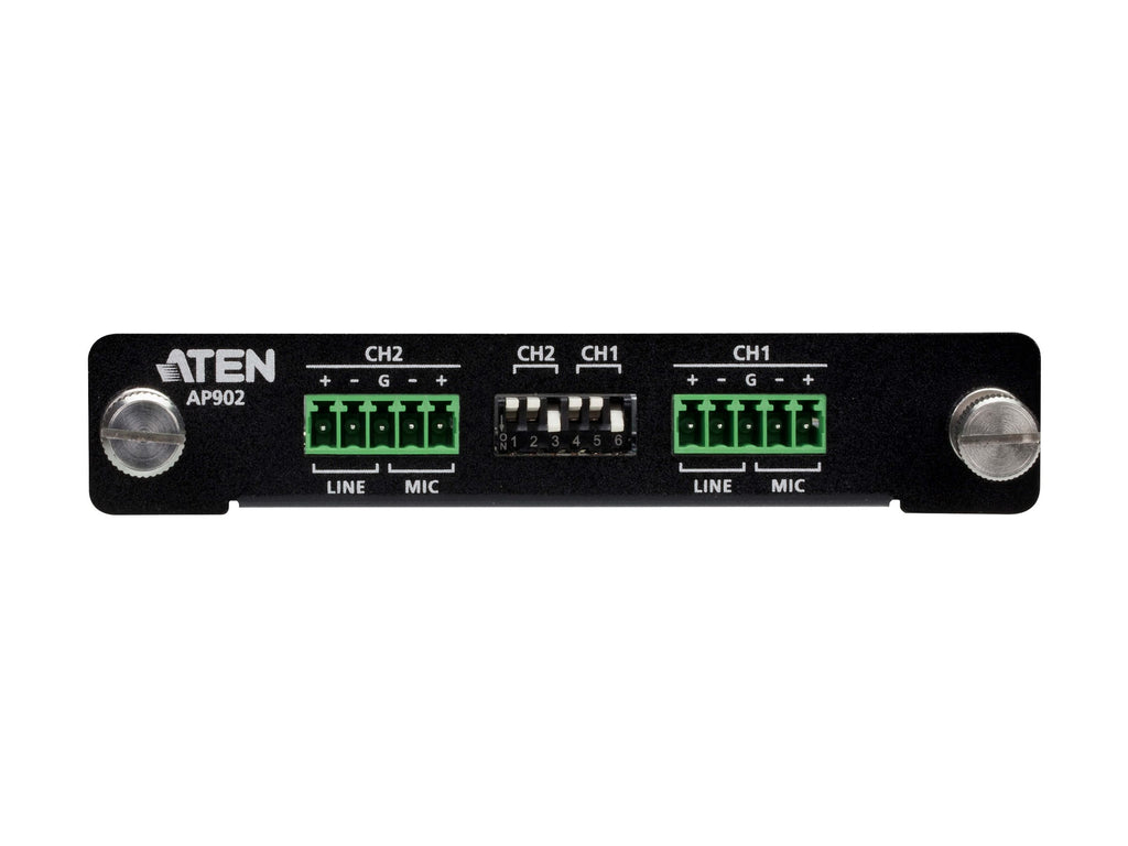 Equipped with front-located 5-pin Euroblock connectors, the AP902 offers easy access for both microphone and line inputs, supporting a total of 4 connections to accommodate a variety of audio sources.