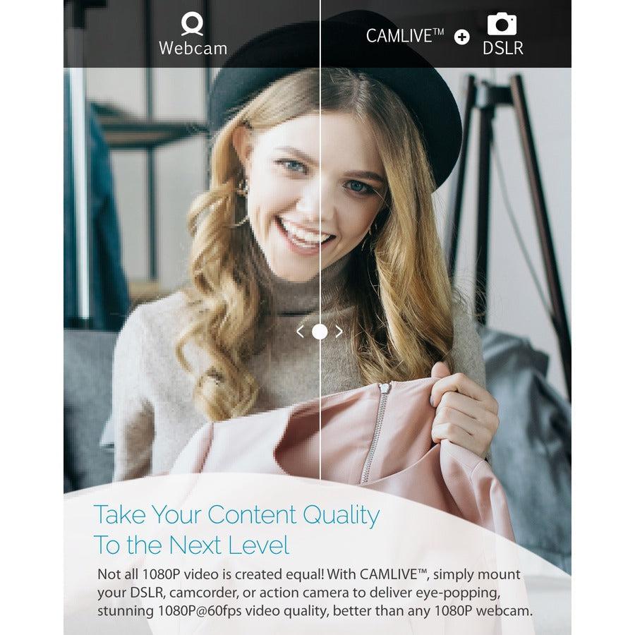 Not all 1080P video is created equal! With CAMLIVE™, simply mount your DSLR, camcorder, or action camera to deliver eye-popping, high quality video on Windows and Mac systems at stunning 1080P@60fps, better than any 1080P webcam. Make your streaming more professional and create excellent content to attract more followers and subscribers.
