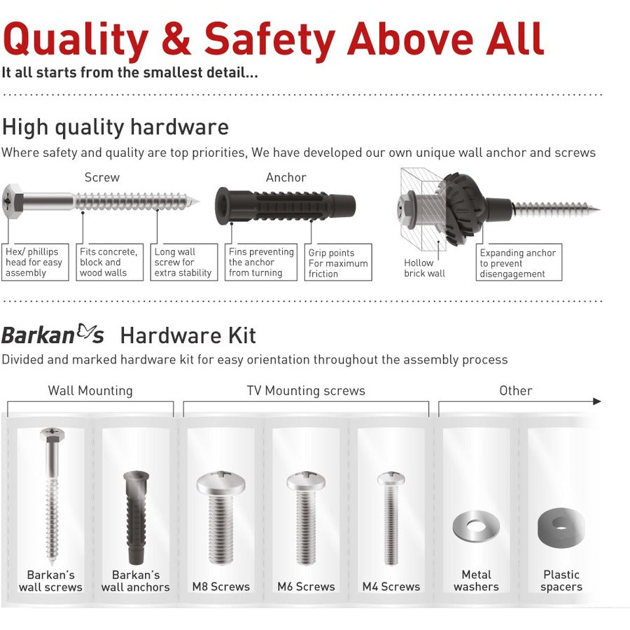 Barkan Wall Mount for TV, Flat Panel Display, Curved Screen Display - Black