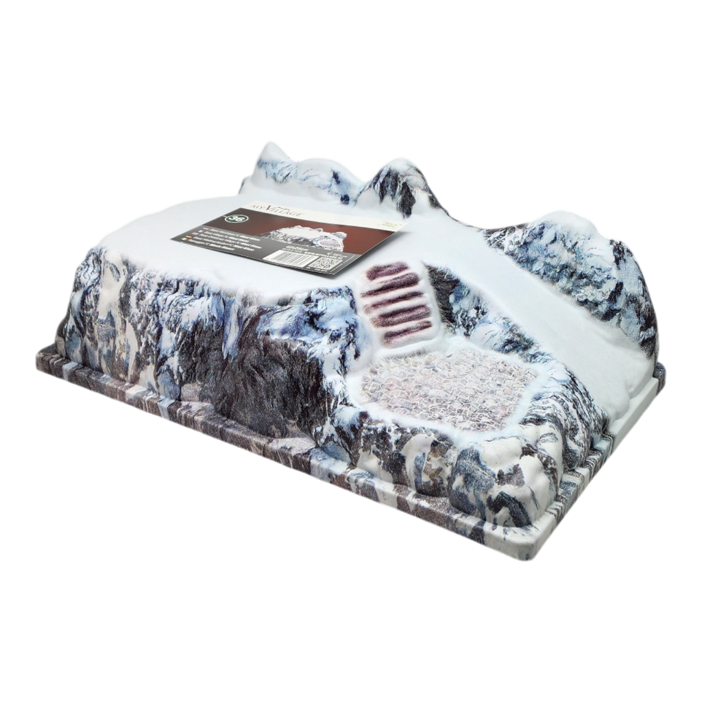 Welcome to a delightful miniature winter retreat with this enchanting village landscape. Measuring about 16.5 inches long, almost 10 inches wide, and just under 6 inches high, this compact yet meticulously detailed piece brings the magic of a festive village right into your home. Nestled among snow-covered peaks, this scene features a quaint church, a charming gazebo, and bustling tiny figures, capturing the essence of a cozy winter community.