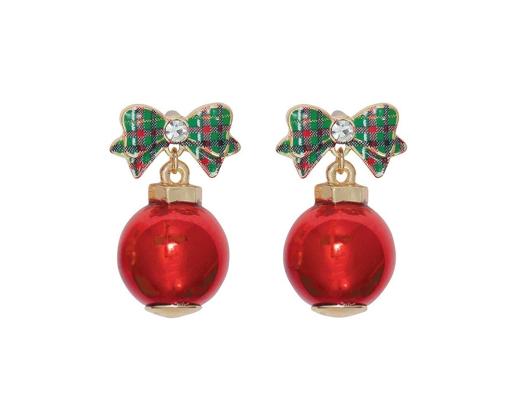 Measuring approximately 1 inch long, these earrings are designed for comfort and lightweight wear, making them perfect for all-day festivities. Crafted with a combination of high-quality materials and fun detailing, the red baubles and vibrant plaid bows come together to create a joyful statement piece that embodies the essence of the holidays. Treat yourself to these cheerful earrings or gift them to someone special—the perfect way to share a little holiday cheer!