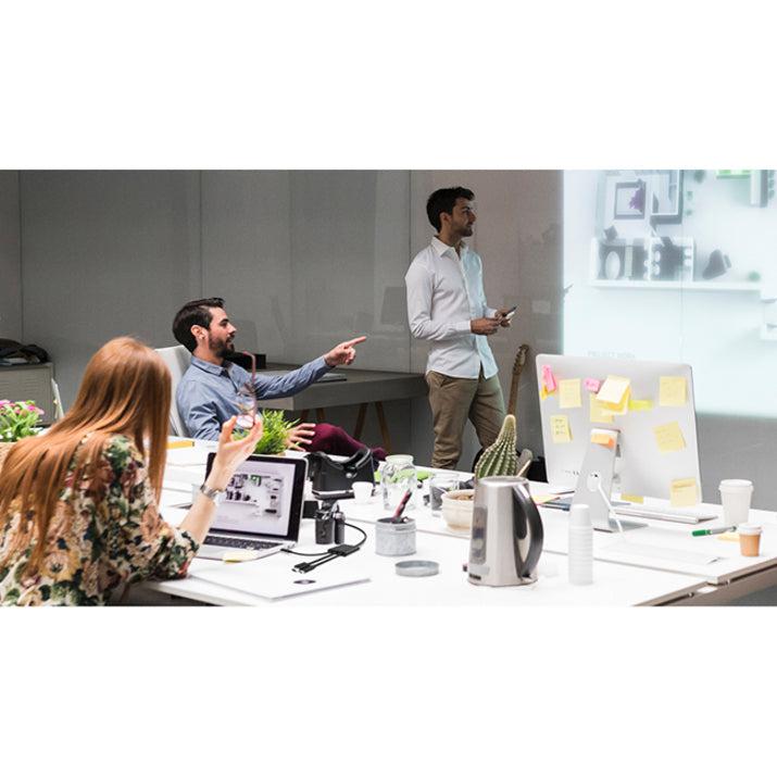 PLUG-AND-PLAY CONNECTIVITY The adapter works with your laptop without requiring an additional software download. This means faster setup in the room and allows any meeting attendee to use the adapter without prior preparation. The long cable also helps by reaching to any seat in the room.