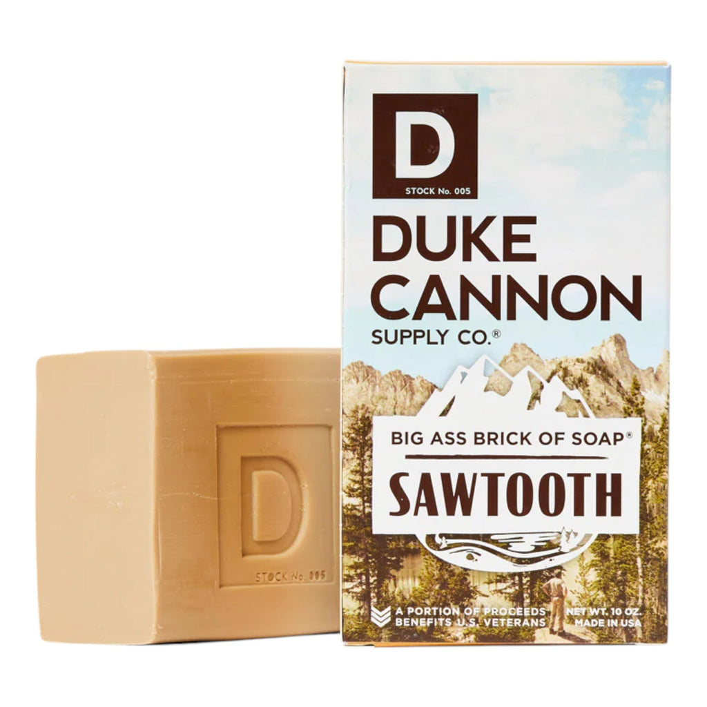 Immerse yourself in the great outdoors with Duke Cannon's Big Ass Brick of Soap in Sawtooth. This generous 10-ounce bar is crafted to replicate the invigorating essence of high mountain adventures, combining the refreshing aromas of alpine air and cedarwood. Each wash feels like a trip through rugged trails, offering you a moment of escape from the daily grind while leaving you feeling clean and revitalize, ready to conquer your next challenge.