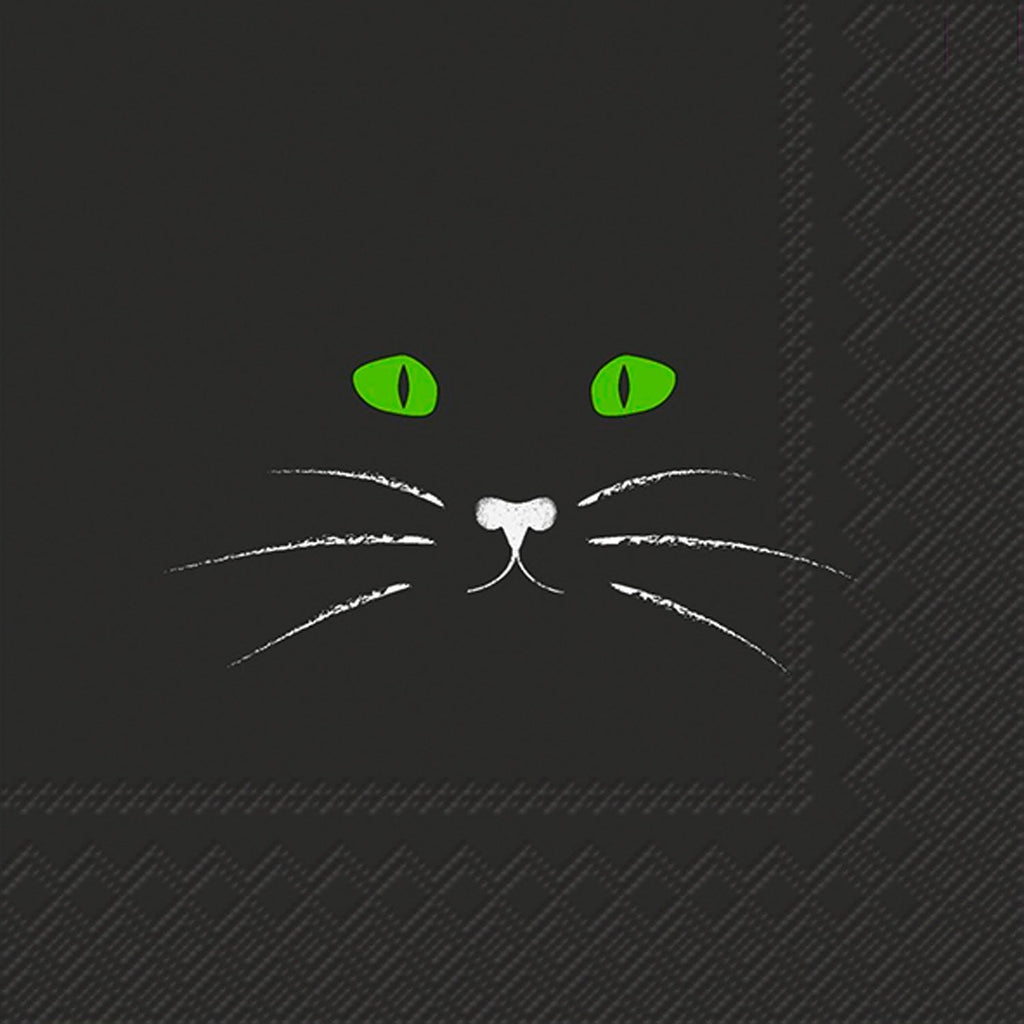 Embrace the playful spirit of your gatherings with our whimsical Black Cat Face Cocktail Napkins! This enchanting package includes 20 three-ply napkins, each measuring 5 inches by 5 inches when folded and opening up to a generous 10 inches by 10 inches. Featuring a striking design of a black cat's face with vibrant green eyes set against a dark background, these napkins are perfect for Halloween parties, cat-themed celebrations, or any event that calls for a touch of fun!