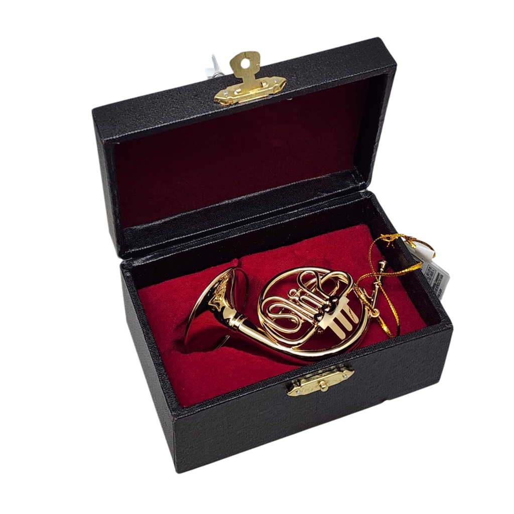 Add an orchestral note to your holiday celebrations with this delightful ornament that fits perfectly in a keepsake box lined with plush red velvet, making it a wonderful gift for music lovers or anyone who appreciates fine craftsmanship. Perfect for Christmas, it can also make a unique gift for musicians on any special occasion. Let this French horn ornament enhance your holiday gathering with its timeless appeal and musical spirit.