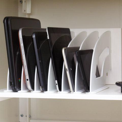 - Convenient: Puts six small mobile devices in easy reach for distribution from your desk or presentation workstation. - Powerful: Includes a 6-outlet power strip with 20-foot power cord on the shelf. - Easy Installation: Mounts into any 19” rack mount rail system. - Secure: Utilizes your locking cabinets on the Instructors Tech Desk or Presentation Shuttle for security. - CarbonNeutral® Certified Product