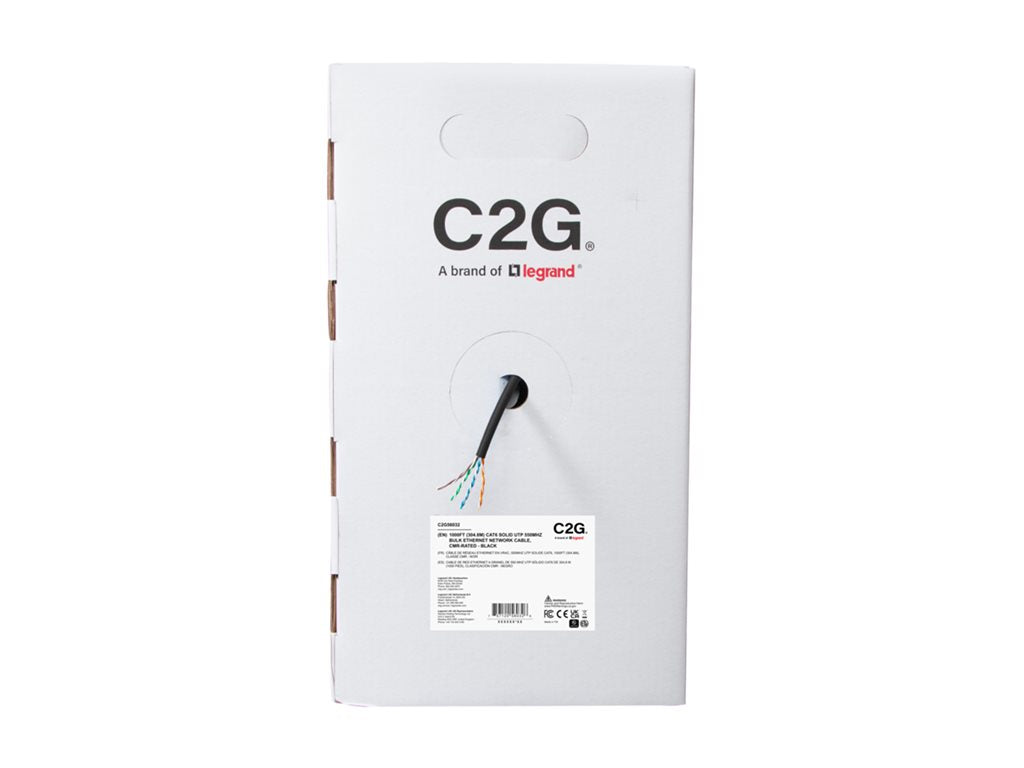 C2G 1000ft (304.8m) TAA-Compliant Cat6 Bulk Unshielded (UTP) Ethernet Network Cable with Solid Conductors-Riser CMR-Rated - Black - Bulk cable - TAA Compliant - 1000 ft - 0.2 in - UTP - CAT 6 - CMR - solid, riser - black