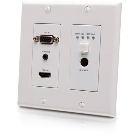 The HDMI HDBaseT + VGA, 3.5mm, RS232, and IR over Cat Extender Dual Gang Wall Plate Transmitter - 4K 60Hz allows 4K HDMI or VGA sources to be extended using a single Cat6a Ethernet cable. This is an ideal solution where video and audio needs to be extended to displays in conference rooms, classrooms, lecture halls, and many other installation needs that are far beyond the length limitations of standard cabling.
