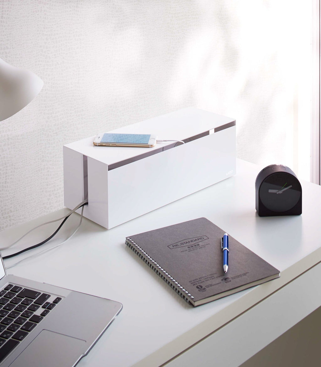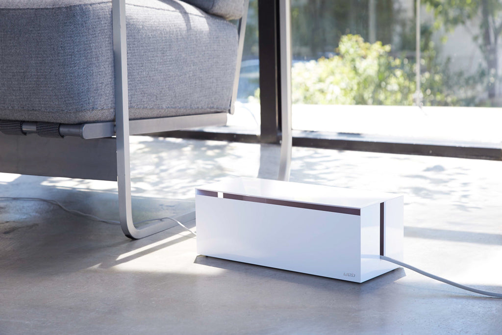 Break free from a thicket of tangled cords and keep your desktop and floor nice and tidy. This sleek resin box holds countless cords and a power strip with up to seven outlets, keeping electronics safe, dust-free, and out of sight. A simple trick that eliminates the risk of tripping, keeps your robot vacuum running smoothly without getting stuck, and protects your furry friends from playing with a tangle of wires.