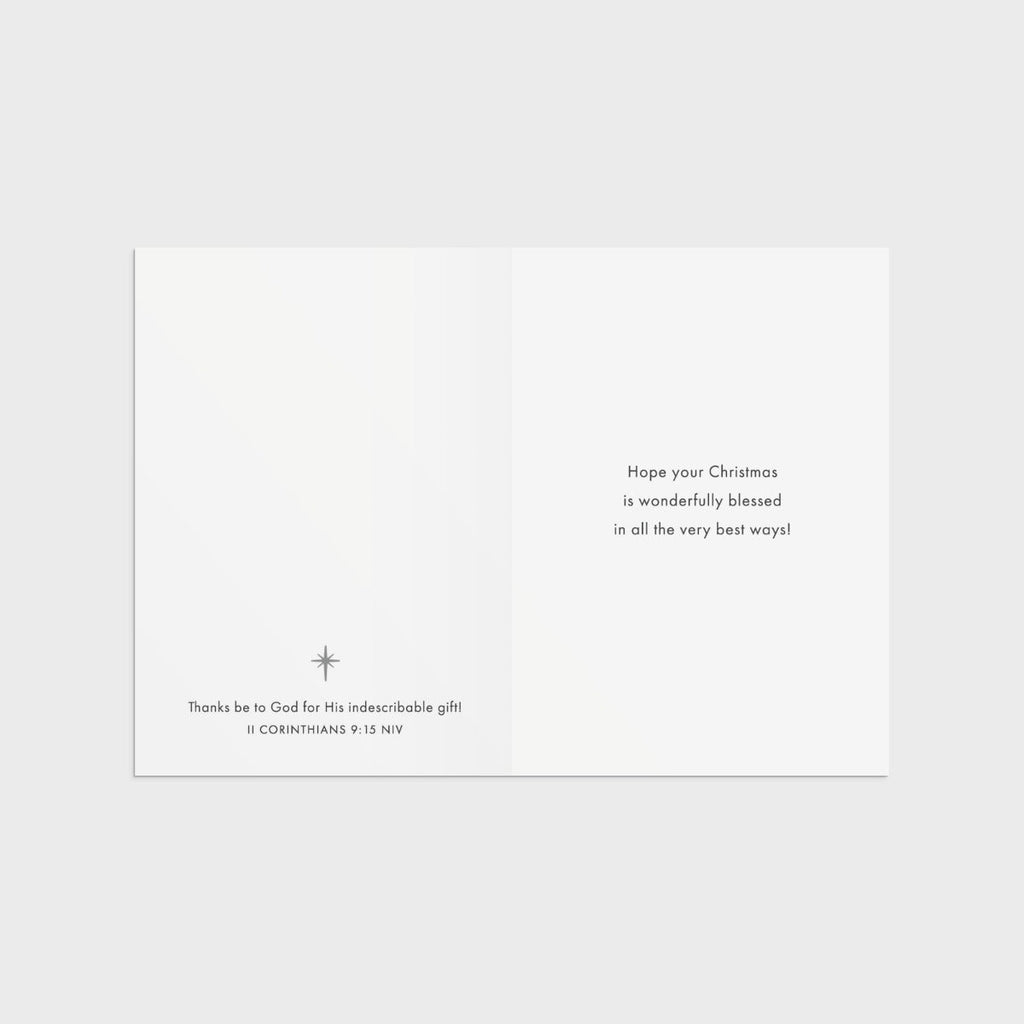 Wish friends and loved ones a very merry and blessed Christmas with these inspirational cards that celebrate the best gift ever, Jesus! This premium assortment of inspirational Christmas greeting cards includes twelve cards each of two designs.
