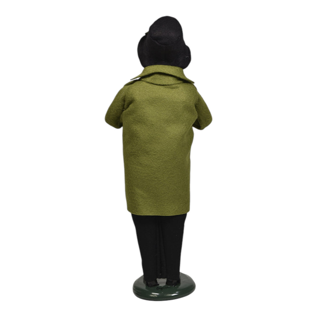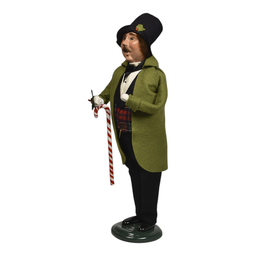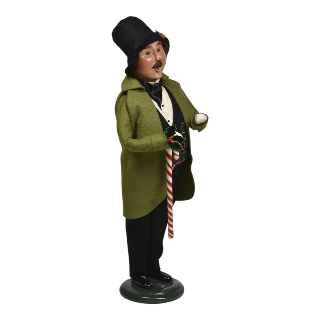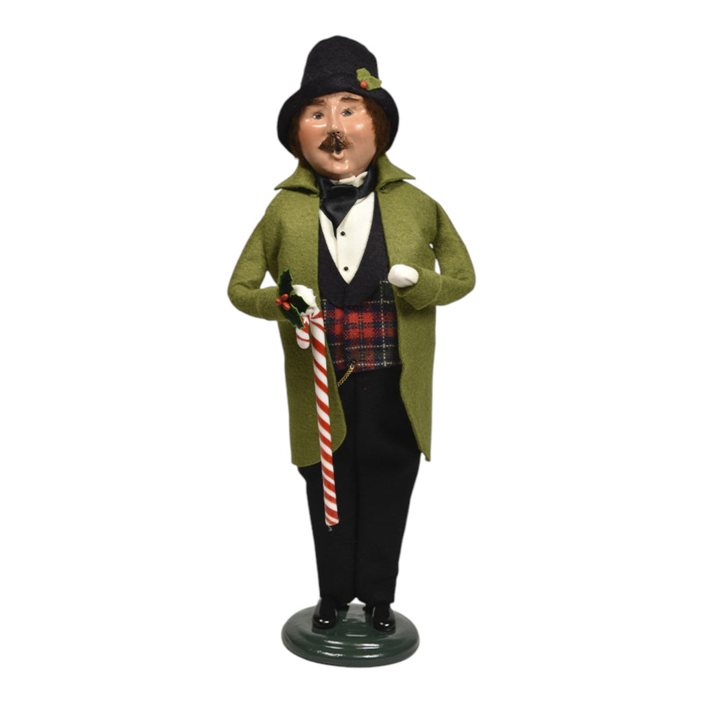 Embrace the festive joy of the holiday season with the delightful Byers Choice Candy Cane Family Man Figurine! Standing at an impressive 13 inches tall, this charming collectible features a dapper gentleman dressed in a classic green coat and a stylish black hat. He holds a festive candy cane in one hand, embodying the spirit of holiday cheer and the traditional joy of the season.