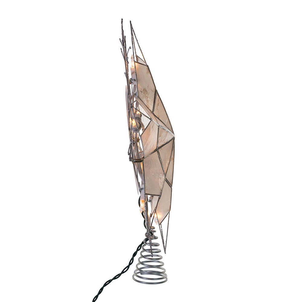 Browse the Complete Gifts & Holiday Collection Elevate your holiday decor with the enchanting Capiz Silver Snowflake Star Treetop, a stunning centerpiece that will dazzle throughout the festive season. Standing at 14 inches tall and adorned with intricate wire detailing, this stylish treetop captures the essence of winter wonder with its geometric snowflake design. The shimmering capiz shell panels catch the light beautifully, radiating warmth and creating a magical ambiance around your home.