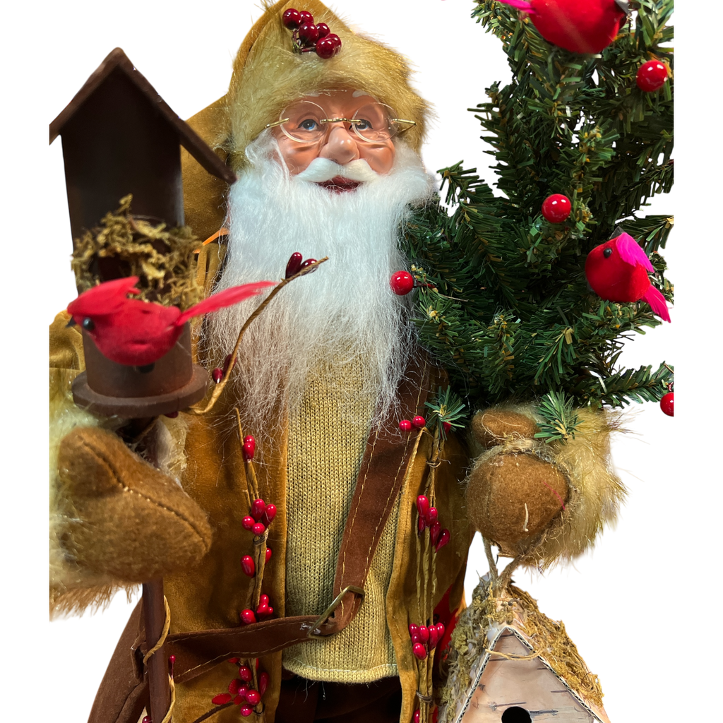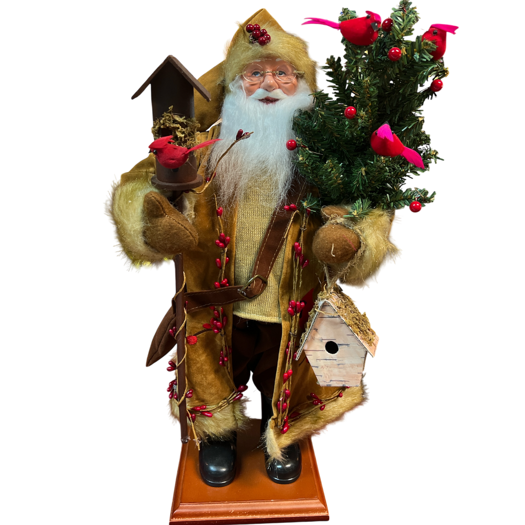Bring a touch of rustic charm to your holiday décor with the delightful Cardinal and Berries Santa, standing at 20 inches tall. This whimsical Santa figure is adorned with a cozy brown cloak embellished with vibrant berry accents, perfectly capturing the spirit of the season. With a decorative sprig of berries and cardinals in his hands, he embodies the warmth and joy of winter, reminding us of nature’s beauty during the festive season.