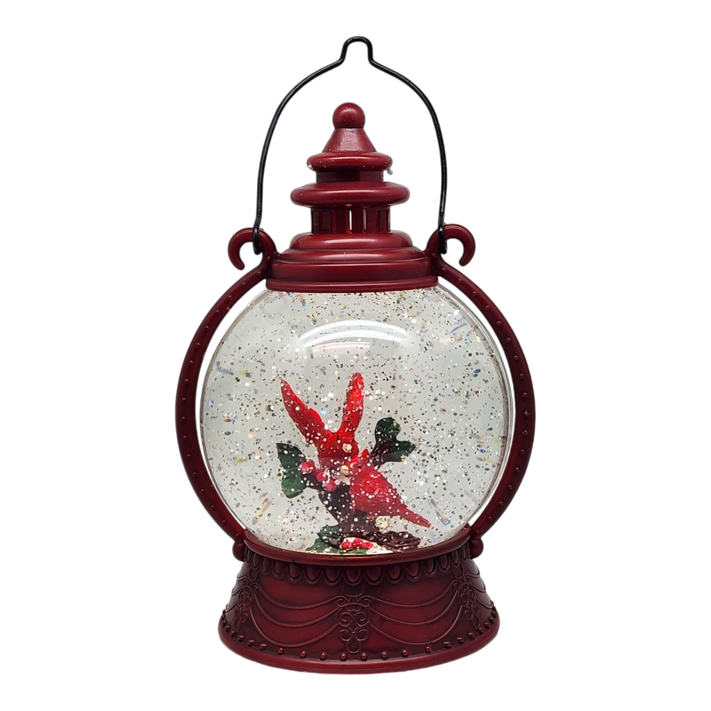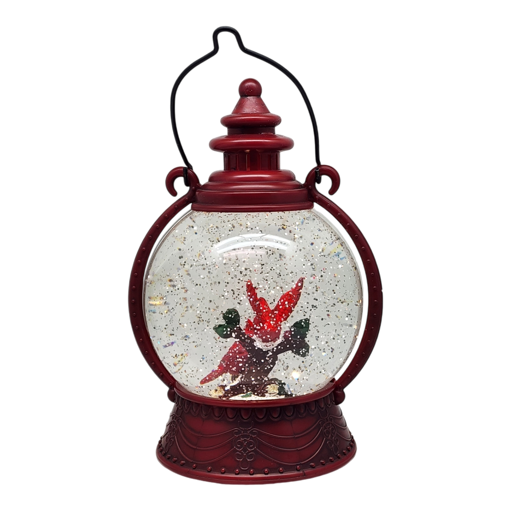 Featuring Cardinals in various poses, the lantern lights up, and water and glitter swirl making it enchanting to watch.