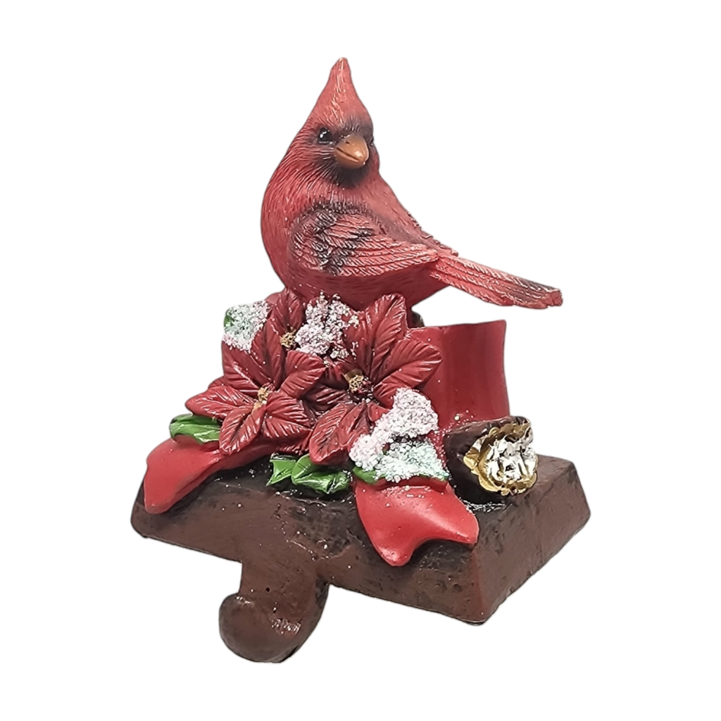Welcome the festive spirit into your home with our enchanting Cardinal Stocking Holders! Standing proudly at 5 1/2 inches tall, these vibrant red cardinals perched on beautifully detailed bases adorned with poinsettias are sure to bring a touch of holiday magic to your mantel. Each holder is designed with a meticulous eye for detail, capturing the grace and charm of these beloved birds, making your fireplace the focal point of your festive decor.