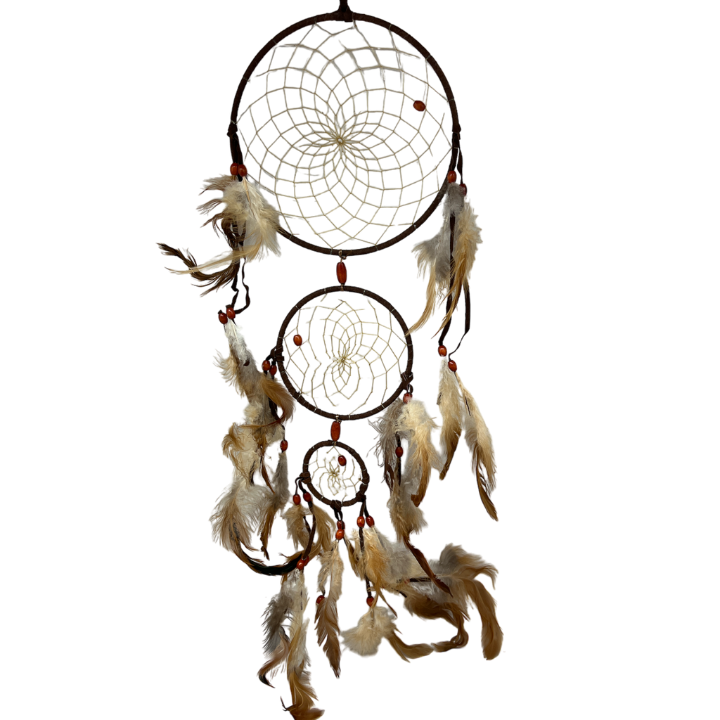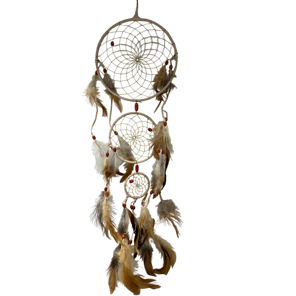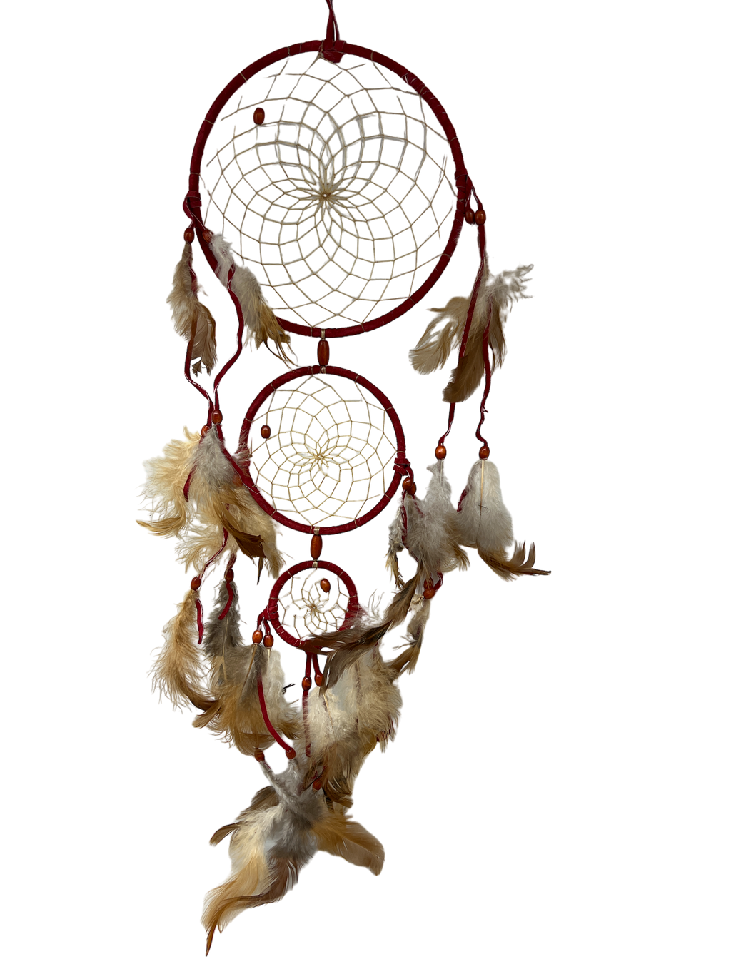3 circles with beads and feather trim in descending sizes 6 inch, 4 inch 2 inch