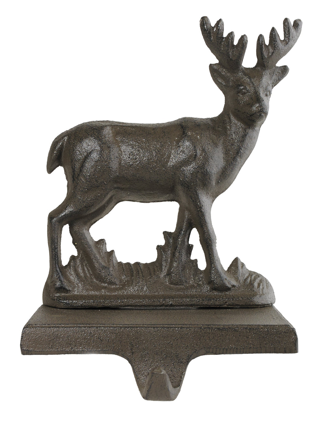 Heavy-duty rustic cast iron stocking holder with a classic finish to hold your prized possessions over the fireplace, staircase, or even kitchen table.