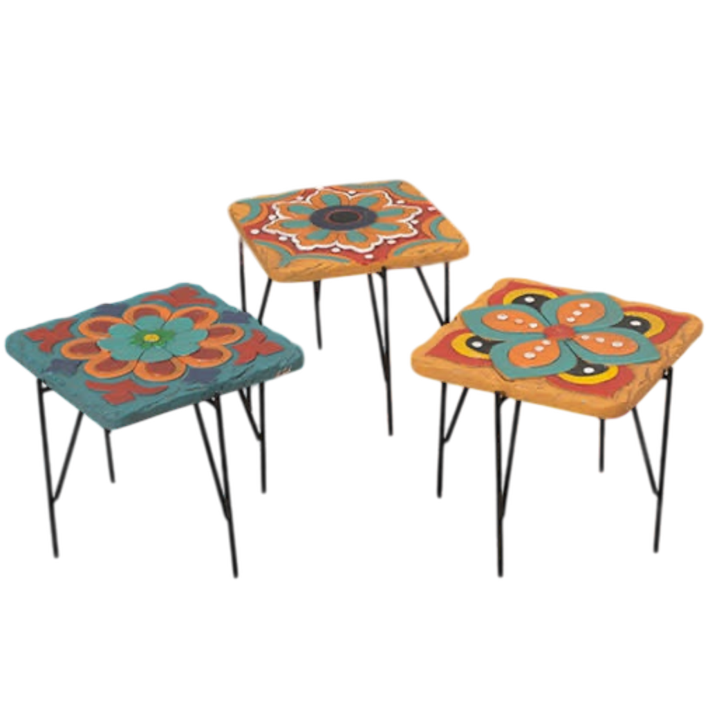 Charming Design: Features colorful, Latin-style tile tops with vibrant floral patterns, adding artistic flair to your decor.