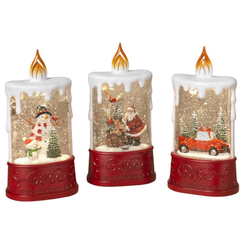 Powered by 3 AA batteries (not included), these lighted water globes create a warm and inviting glow, perfect for setting the mood during holiday gatherings. Imagine the twinkling lights reflecting off the glimmering water as guests admire the charming characters inside. Whether displayed on your mantle, table, or as part of your holiday vignette, these enchanting candle water globes will fill your home with festive cheer and capture the hearts of all who admire them. Spread whimsy and warmth this season with these delightful focal points that truly embody the wonder of winter!