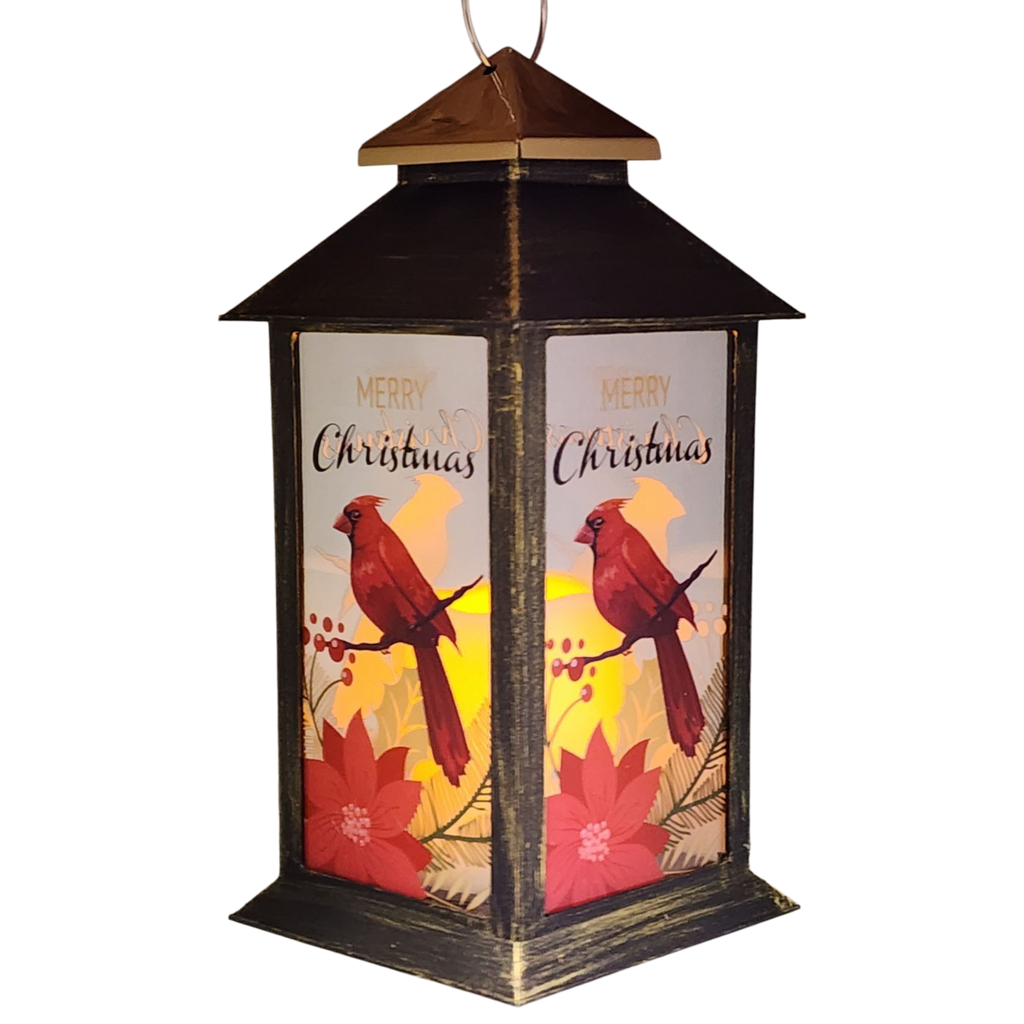 Illuminate your holiday decor with the charming Cardinal Christmas Lantern! Standing at an elegant 12 inches tall, this beautiful lantern features a striking design showcasing vibrant red cardinals perched amongst festive poinsettias. The warm and inviting illustration captures the essence of the season, perfect for adding a touch of nature-inspired charm to your home.