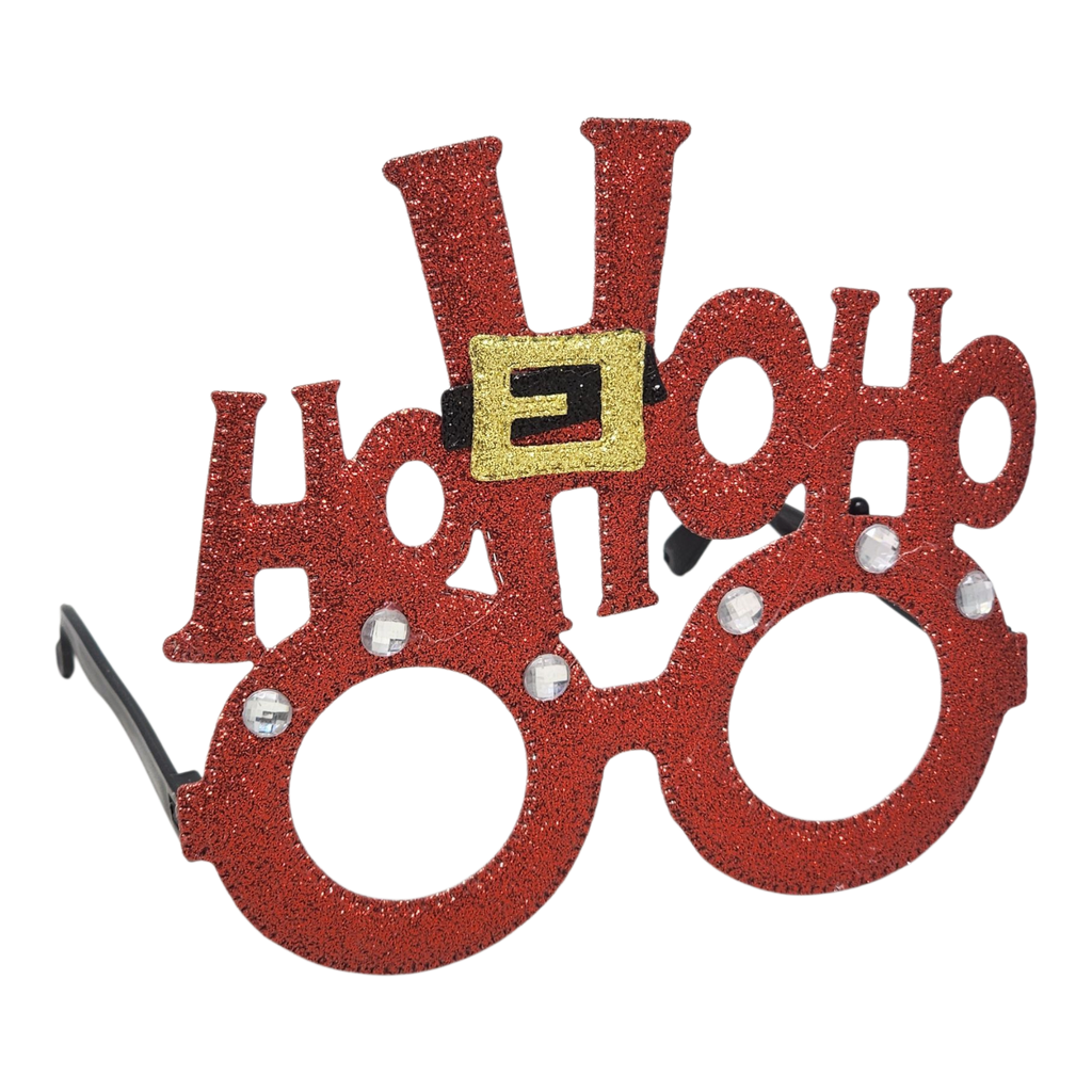 Spread the joy of the season with our fabulous Ho Ho Ho Glitter Glasses! These festive eyewear pieces are adorned in vibrant red glitter and are sure to catch attention at any holiday gathering. Featuring the cheerful phrase "Ho Ho Ho" above the frames, complete with a charming belt-shaped embellishment, these glasses embody the playful spirit of Santa Claus and all things merry. Measuring approximately 6 inches by 6 inches, they are the perfect accessory for spreading cheer at holiday parties, family gatherings, or festive photo ops.