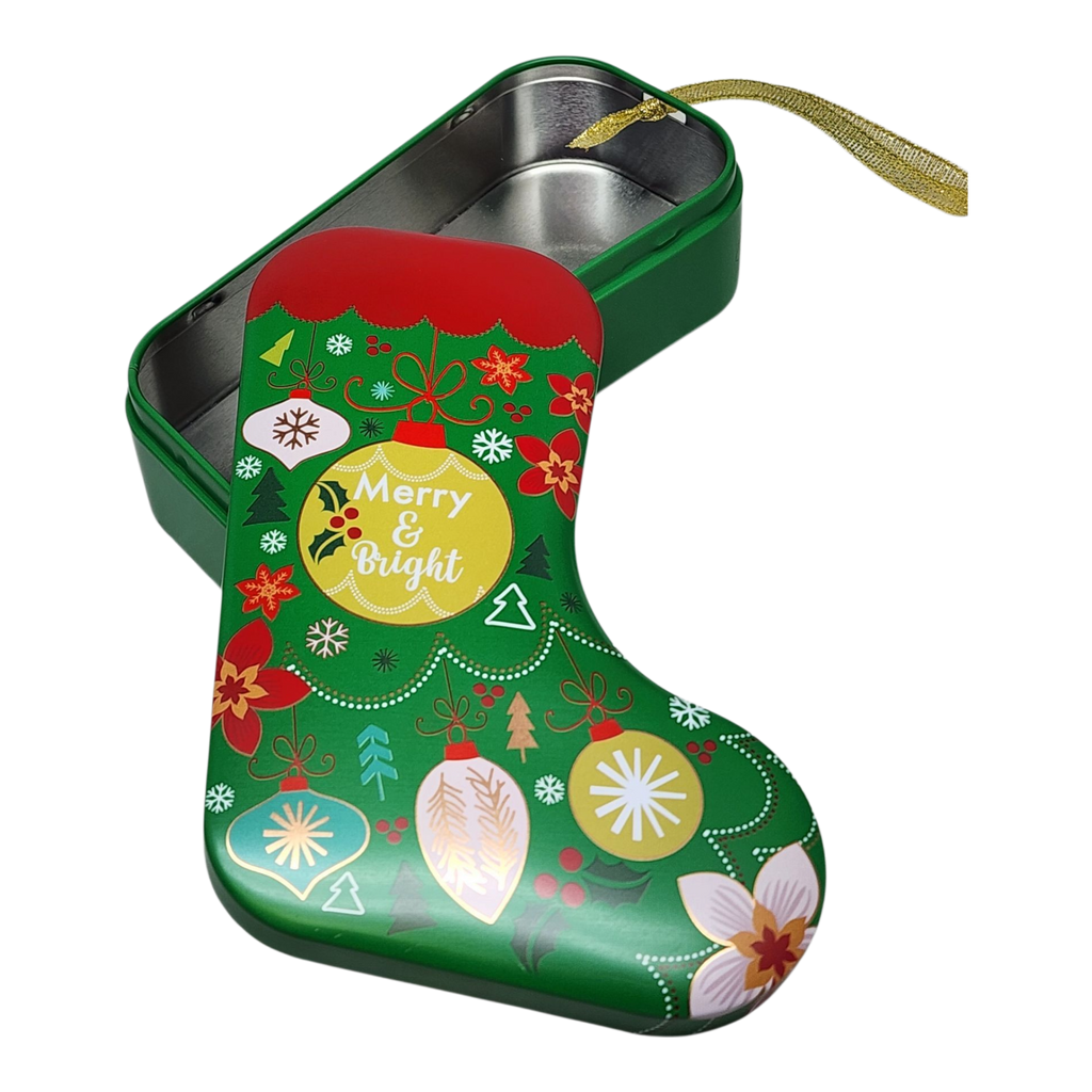 The tradition of filling stockings dates back centuries and has evolved into a beloved ritual of hanging special gifts for loved ones. This tin not only captures that spirit but also makes for a unique ornament to hang on your Christmas tree, thanks to its included golden ribbon. Whether you fill it with delicious baked goods or use it to bring some holiday flair to your home, the Merry & Bright Stocking Cookie Tin is sure to be the highlight of your festive celebrations!