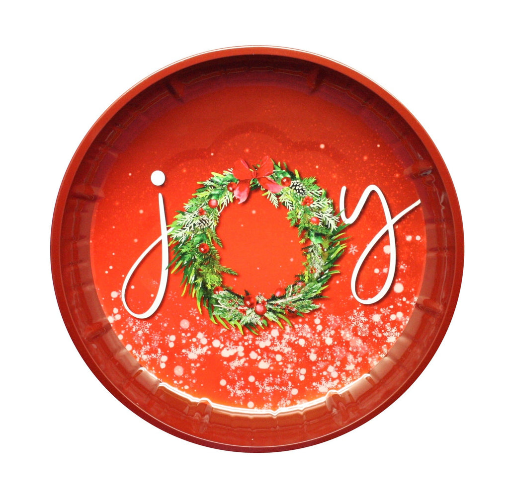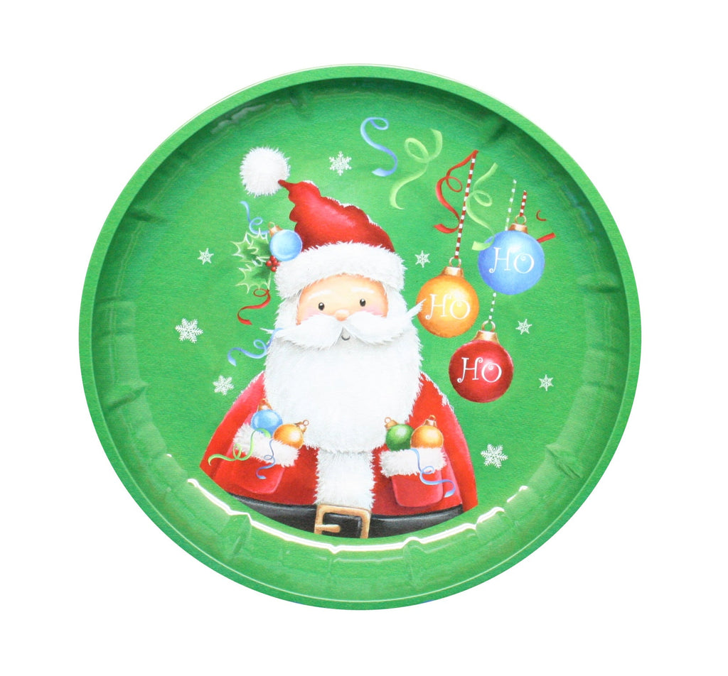 It's the season of giving, and what better way to spread some cheer than with this 10 inch Christmas tin round plate! Perfect for bringing cookies or treats to your neighbors or office - let's make sure everyone gets a little something sweet this holiday season!