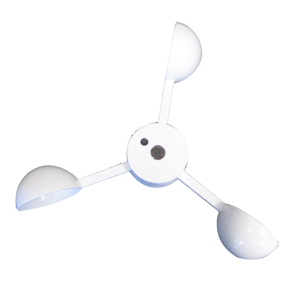 Spare wind anemometer cup kit. Spare anemometer cup assembly with fixings and illustrated fitting instructions for Clipper, Target and Cruiser masthead units. For 5 wired units.