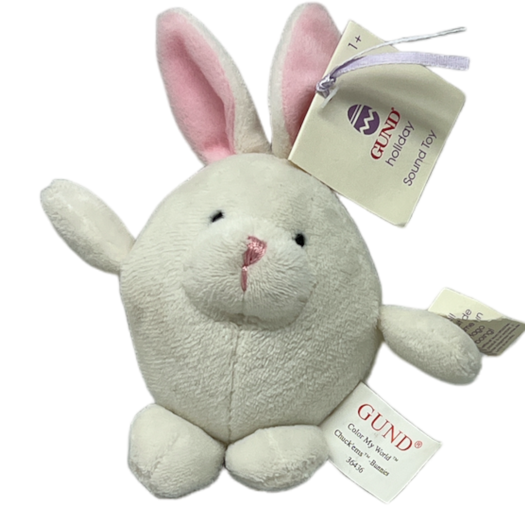 5 inch small White bunny plush makes "boing" sound when tossed.