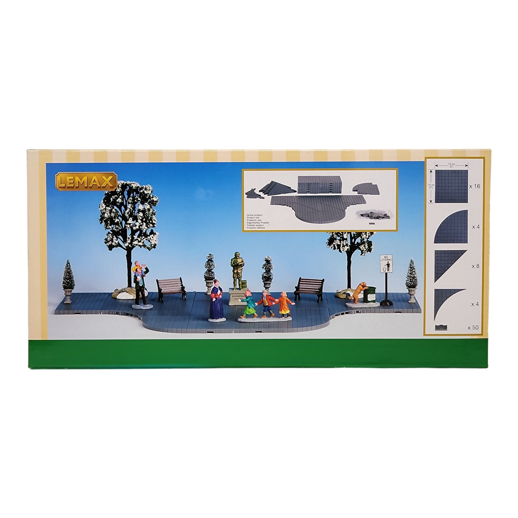 The detailed grid patterns outlined on the packaging make layout planning a breeze, enabling you to experiment with various arrangements according to your vision. Incorporate benches, statues, and lush trees into your park to create a delightful setting where families can gather for joyous holiday celebrations. While the set is designed to include the main components necessary for an inviting park space, there's plenty of room for added accessories, such as figurines and festive decorations, allowing you to reflect the warmth and spirit of the season. Let the Lemax Park Square Set serve as the heart of your village, where stories of togetherness and holiday cheer unfold throughout the festive season!