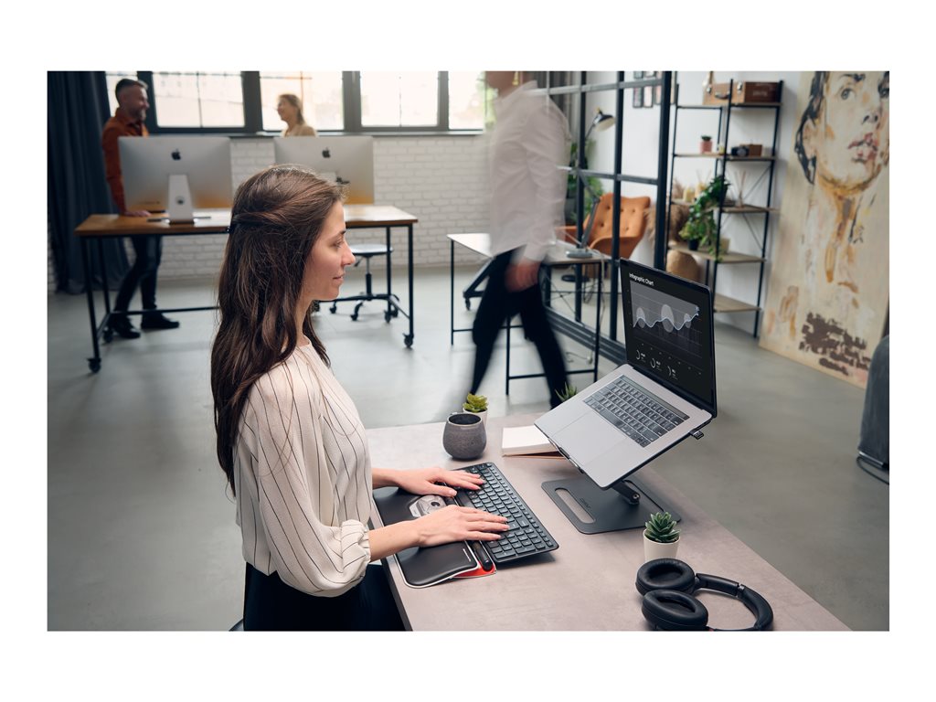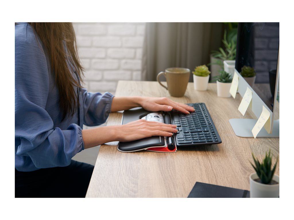 With RollerMouse centrally positioned in front of your keyboard, you no longer need to move your hand to grip the mouse, thus avoiding tension in the neck, shoulders, elbows and wrists. By working in this optimal zone, you can correct your posture and prevent RSI. Use the wrist rest, work with both hands and vary positions to avoid discomfort. Simply enjoy a better way of working.