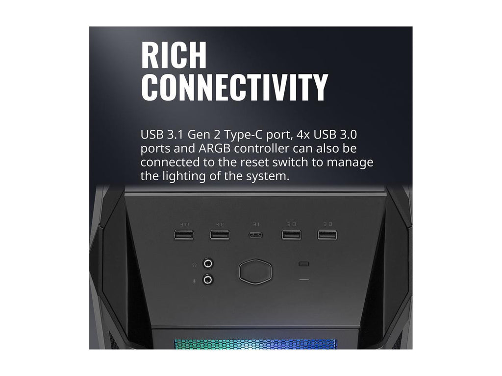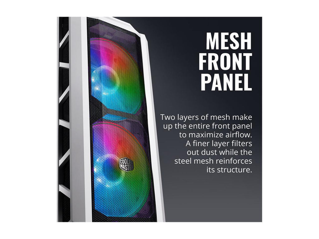 Optimized airflow is guaranteed with a complete mesh front panel, providing plenty of air intake for the two pre-installed 200mm RGB fans. Use the already-integrated RGB lighting to create a captivating build in your preferred color theme.