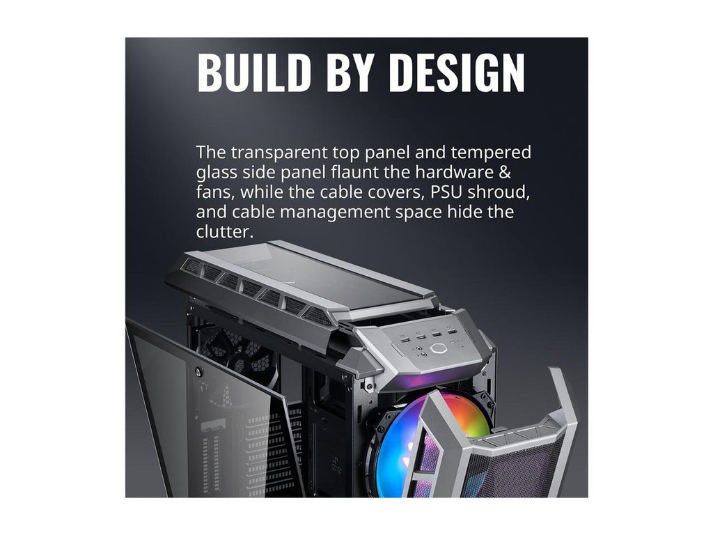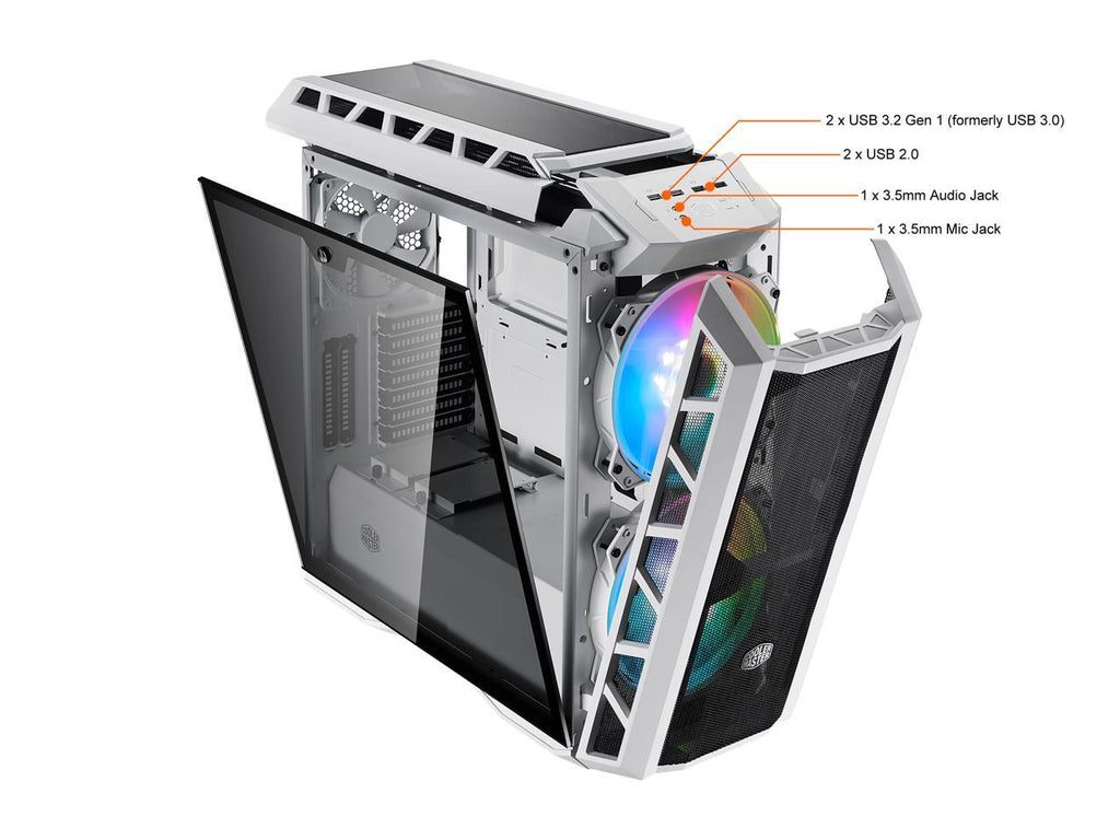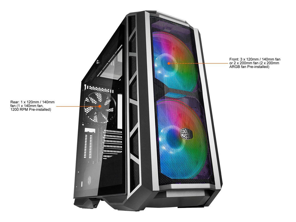 For gamers seeking an ATX mid tower case to build their powerful gaming machine, the Cooler Master MasterCase H500P Mesh is the best option. With two pre-installed 200mm RGB fans and a tempered-glass side panel, plus its mind-blowing heavy-metal design, this case has a super cool appearance that will make your friends envious. Inside, a PSU shroud, CPU cut-out cover and additional cable covers work together to ensure a clean look without cable clutter. Also enjoy easy disassembly as all the panels can be taken off.