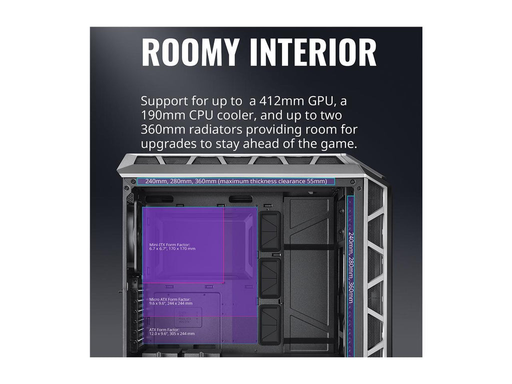 The MasterCase H500P Mesh accommodates up to a 360mm radiator on the top and front.