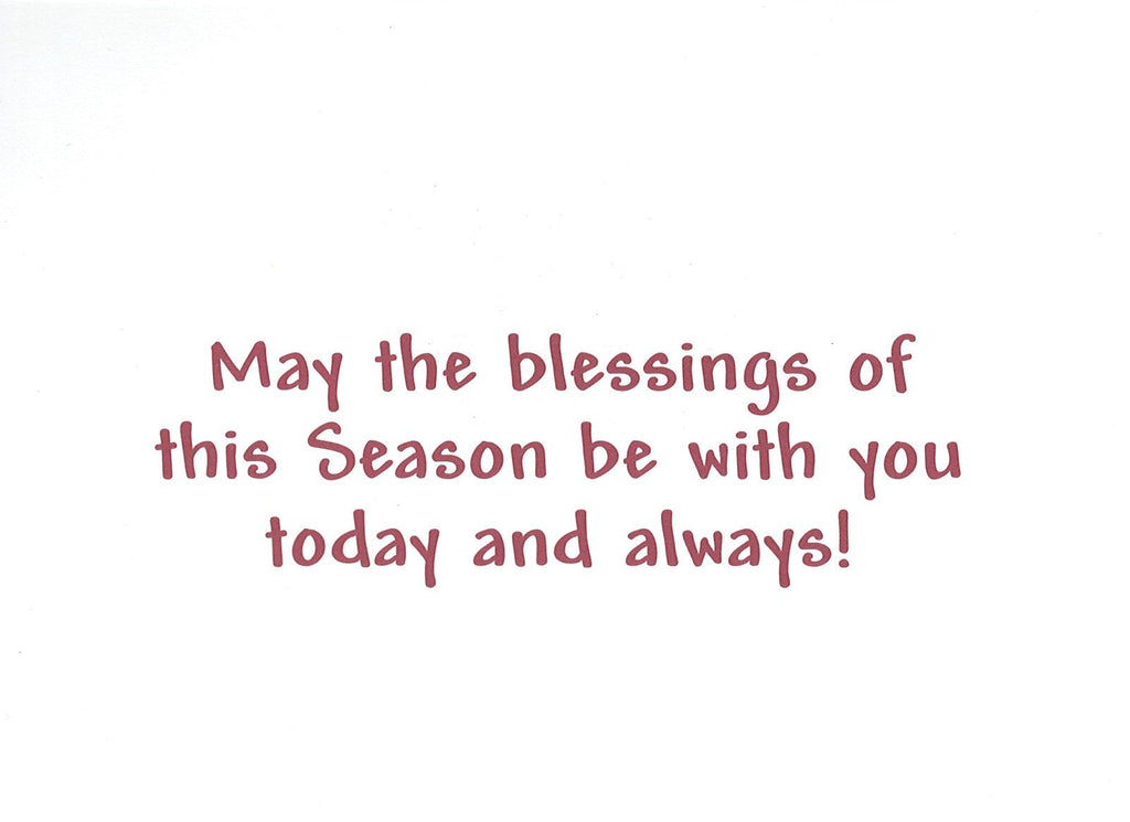 • 12 cards & envelopes• 4 1/4 x 5 1/2 inchesWords inside: May the Blessings of the Season be with you today and always!