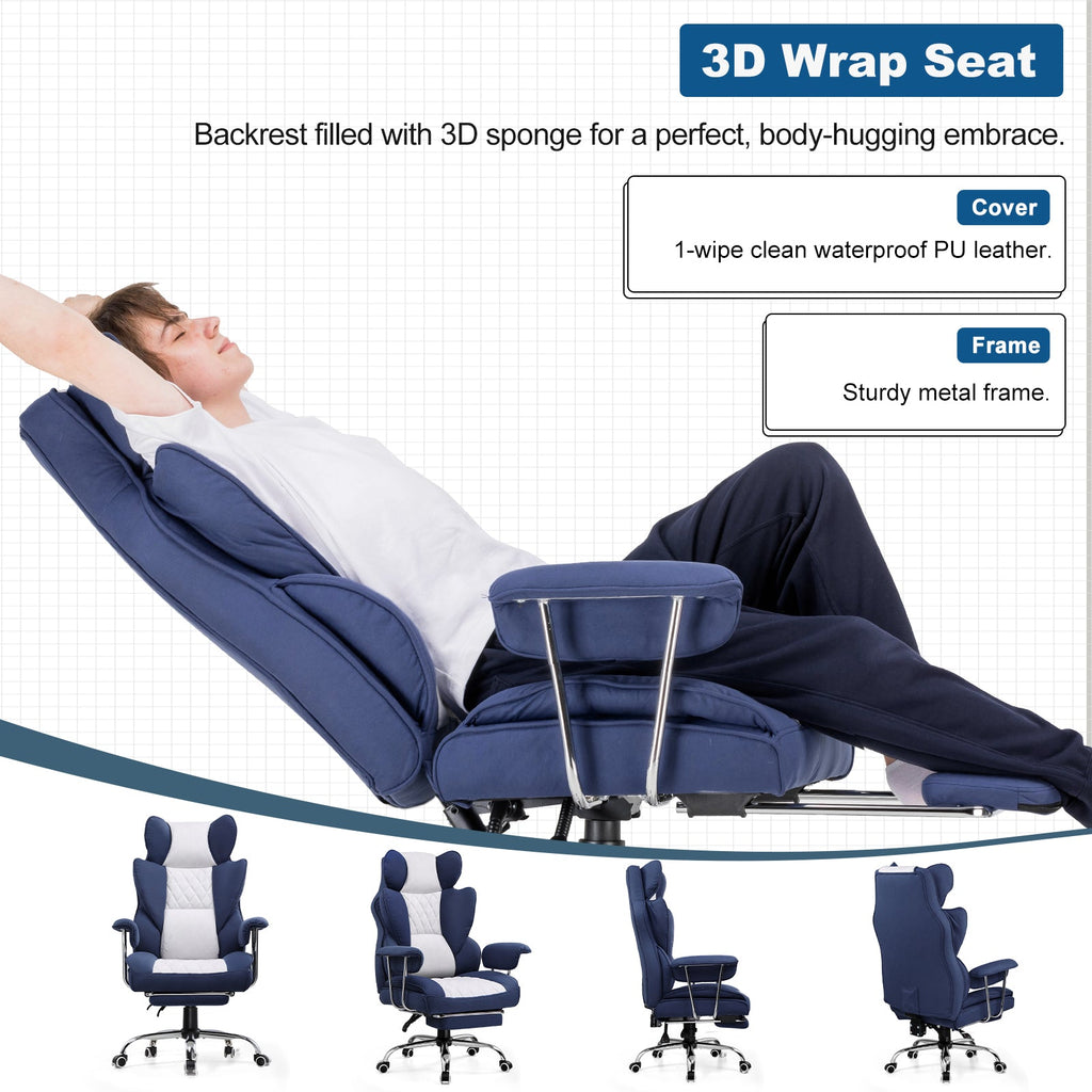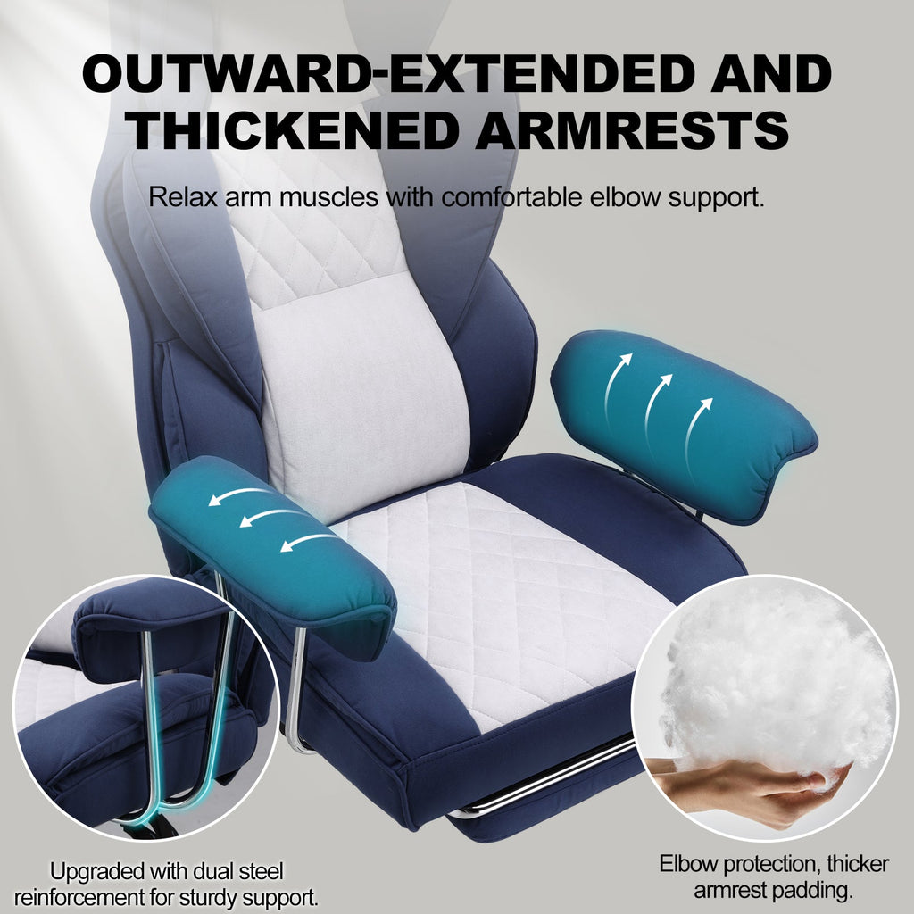 The chair's surface is made of technical cloth fabric, providing a soft touch, high moisture absorption, and heat dissipation, benefiting skin health. It is also highly durable, ensuring no cracking or peeling even with prolonged use.