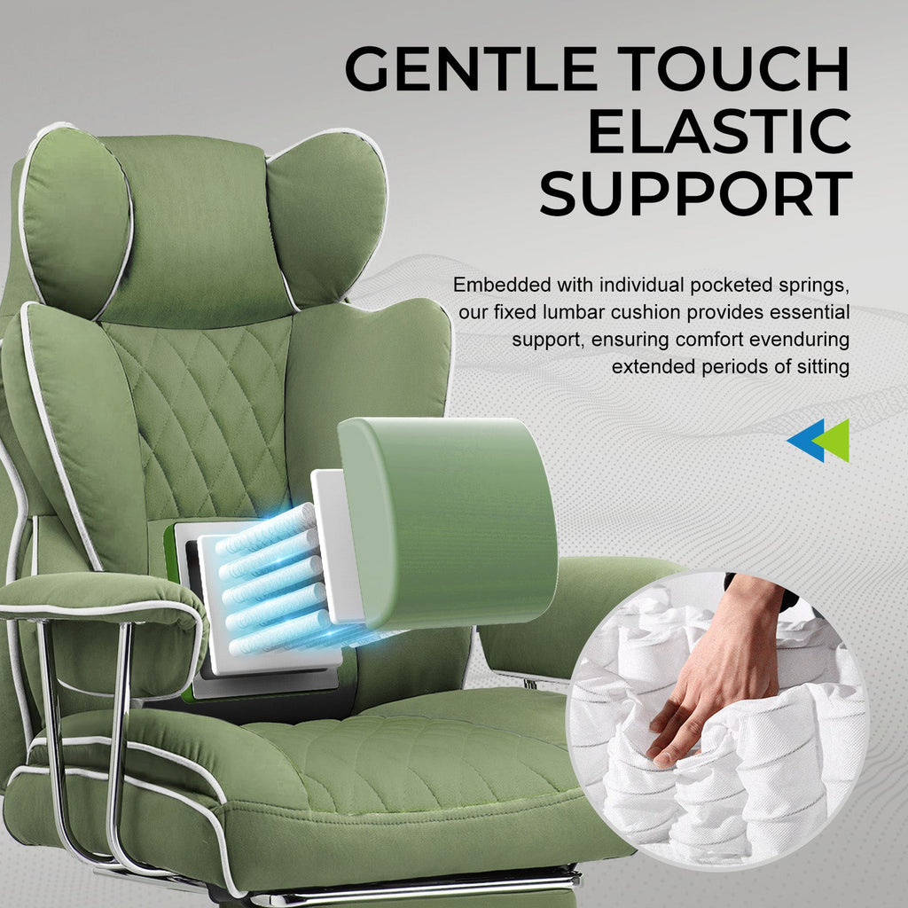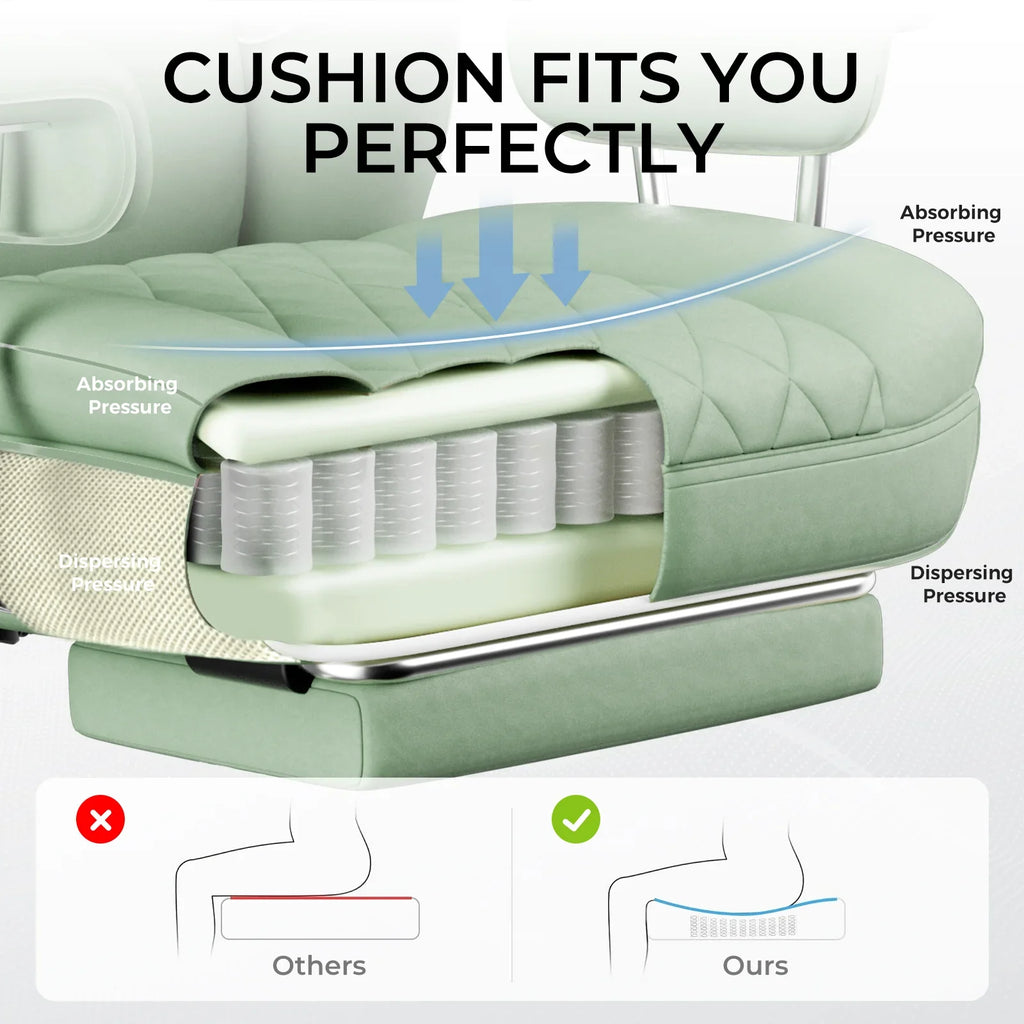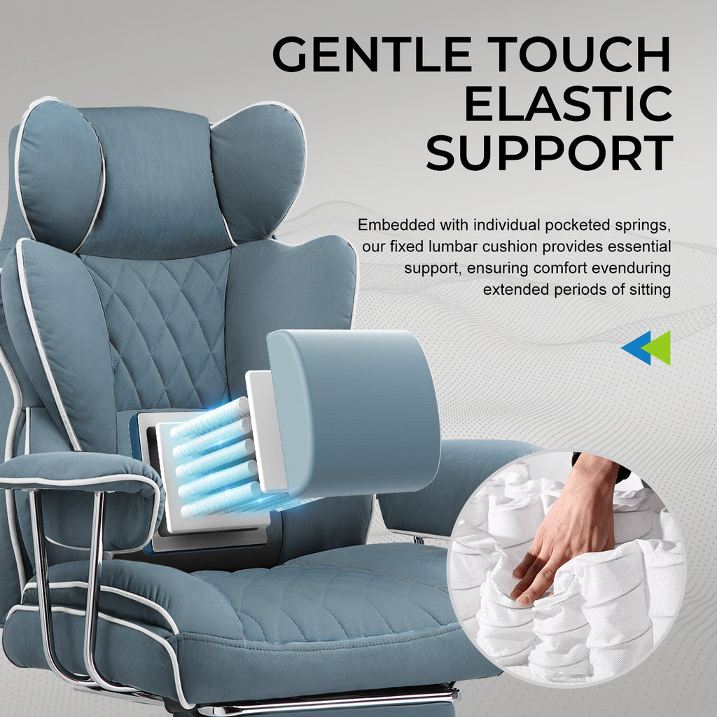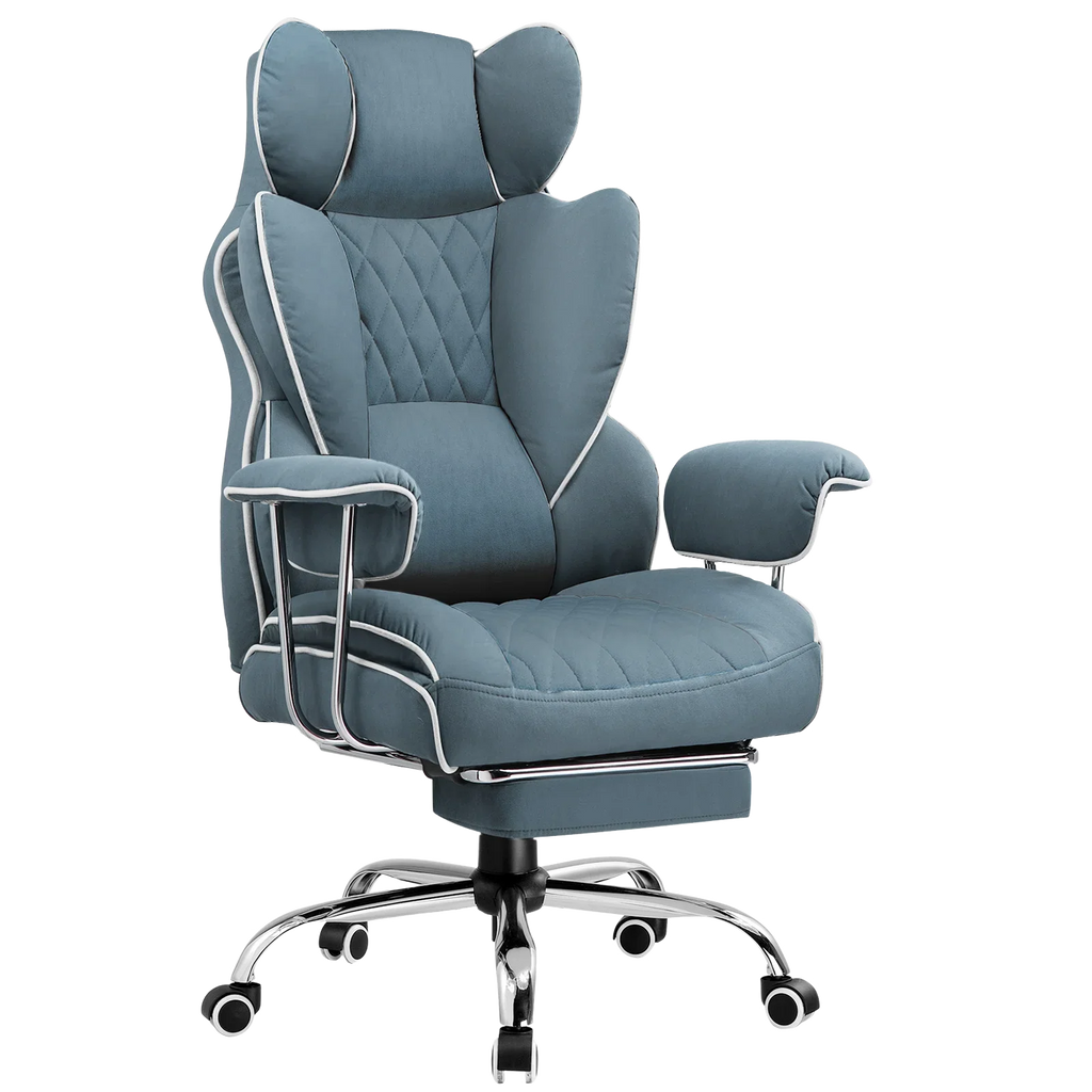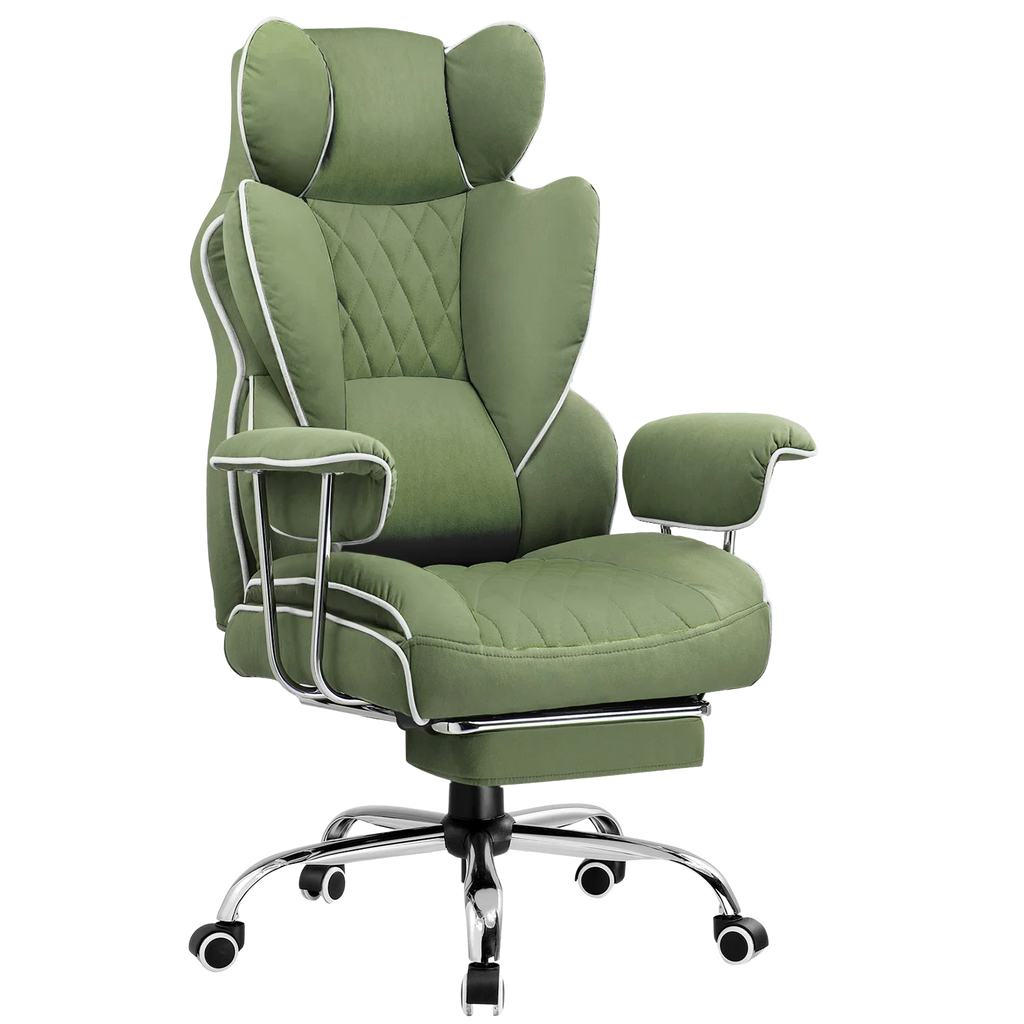 The chair's surface is made of technical cloth fabric, providing a soft touch, high moisture absorption, and heat dissipation, benefiting skin health. It is also highly durable, ensuring no cracking or peeling even with prolonged use.