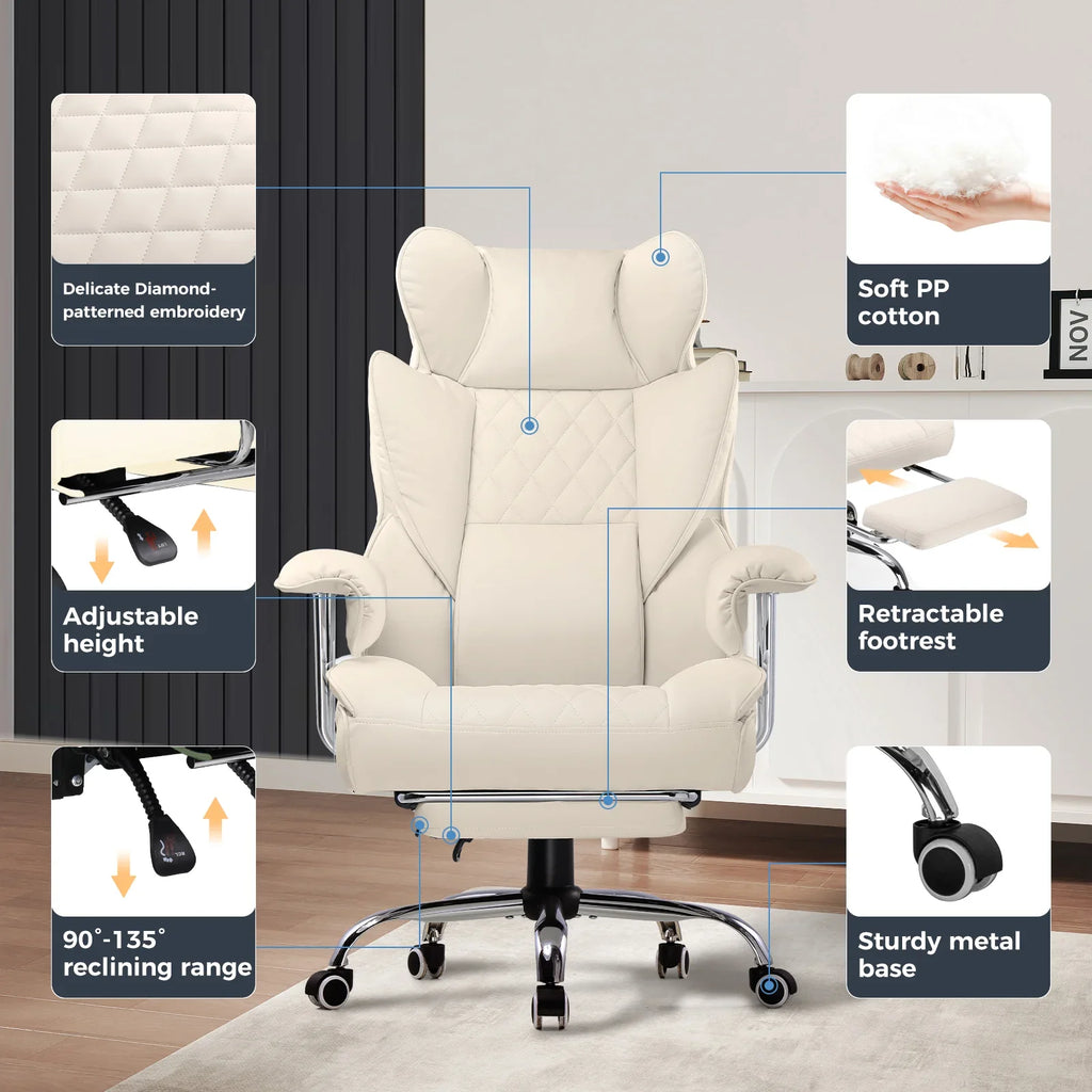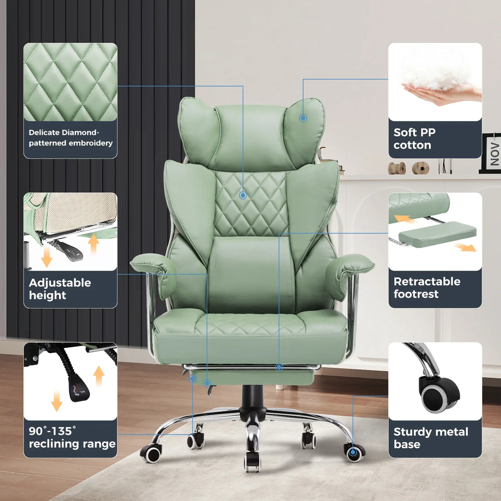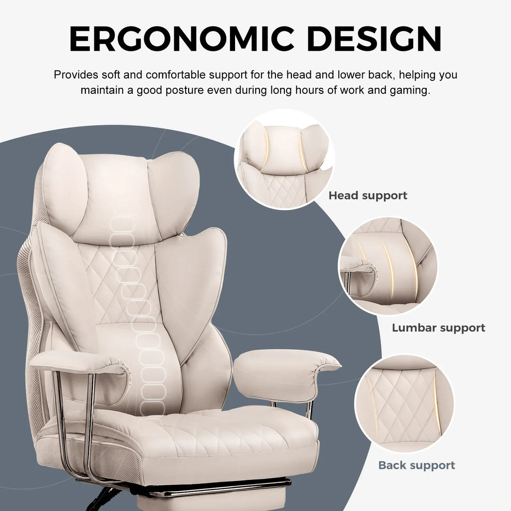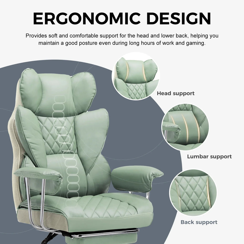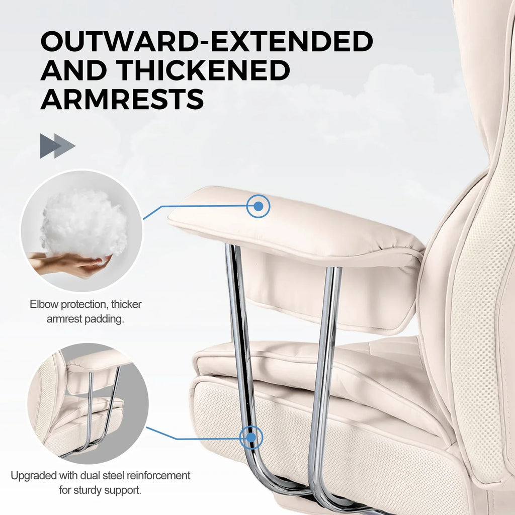 The chair's surface is made of technical cloth fabric, providing a soft touch, high moisture absorption, and heat dissipation, benefiting skin health. It is also highly durable, ensuring no cracking or peeling even with prolonged use.