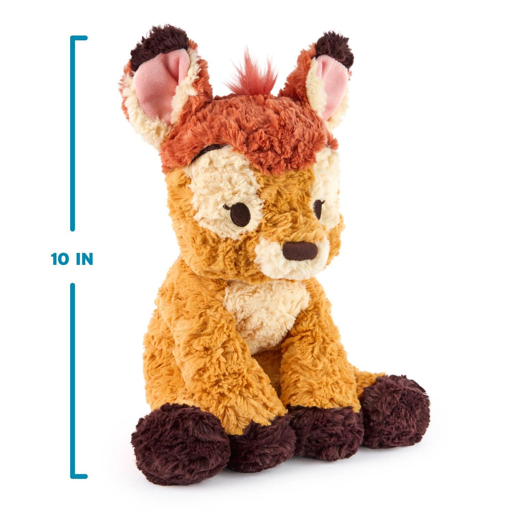 Bambi and Thumper are here from the forest to play! These cuddly stuffed animals have been crafted in our signature Cozys Collection style, bringing the magic of Bambi and these classic Disney characters to one of our most-loved plush lines. Cozys are cuddly companions made from soft, textured fabrics that feel as familiar as hugging an old friend! At 10 inches long, this irresistibly cute Bambi plush features the iconic baby deer with multi-hued brown plush ranging from golden amber to deep chocolate brown. Bambi`s upturned ears have a soft pink plush lining, and his embroidered facial expression includes cute eyelash details and a soft faux-suede nose. Bambi`s back features a realistic spotted pattern, with a burnt-orange head, matching ears, and a fluffy cream-colored tail. Like all Cozys animals, this fawn has soft swirls of high-pile plush and floppy limbs built for hugging. Appropriate for ages 1 and up. Do not machine-wash. DISNEY`S BAMBI PLUSH: This iconic baby deer sits 10` tall and features soft, floppy limbs with a slightly under-stuffed body that makes every squeeze feel even sweeter. Bambi also has soft chestnut plush, a fluffy tail, and a faux suede nose.