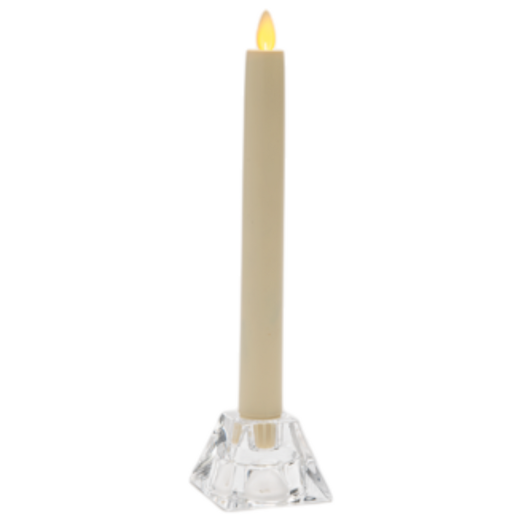 Elevate your candlelight experience with this dazzling glass candle holder designed to shine on any occasion. Its clever reversible design allows you to switch effortlessly between holding a small tealight or votive candle and a traditional taper candle, making it both versatile and elegant. The smooth, clear glass reflects light beautifully, casting a warm and inviting glow that's perfect for intimate dinners, cozy winter evenings, or festive holiday gatherings like Christmas and Hanukkah.