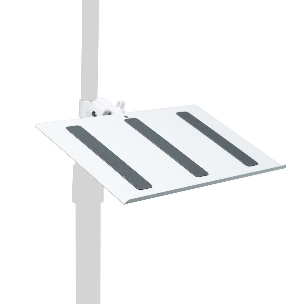 This attachable surface grips the central pole of CTA Digital tablet floor stands, adding an angle-adjustable flat area for your keyboard, Bluetooth speaker, or other tablet accessories. It is compatible with select CTA Digital floor stand models.