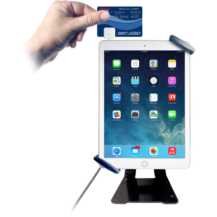 A solid metal stand offers stability and can be secured to a desk or countertop through predrilled holes for easy installation and extra security. The holder can tilt to easily adjust the viewing angle and rotate for horizontal or vertical views. With the perfect design to use any tablet as a workstation, retail display or POS system you can have convenience and security with CTA’s Universal Anti-Theft Security Grip Holder with Stand for Tablets.