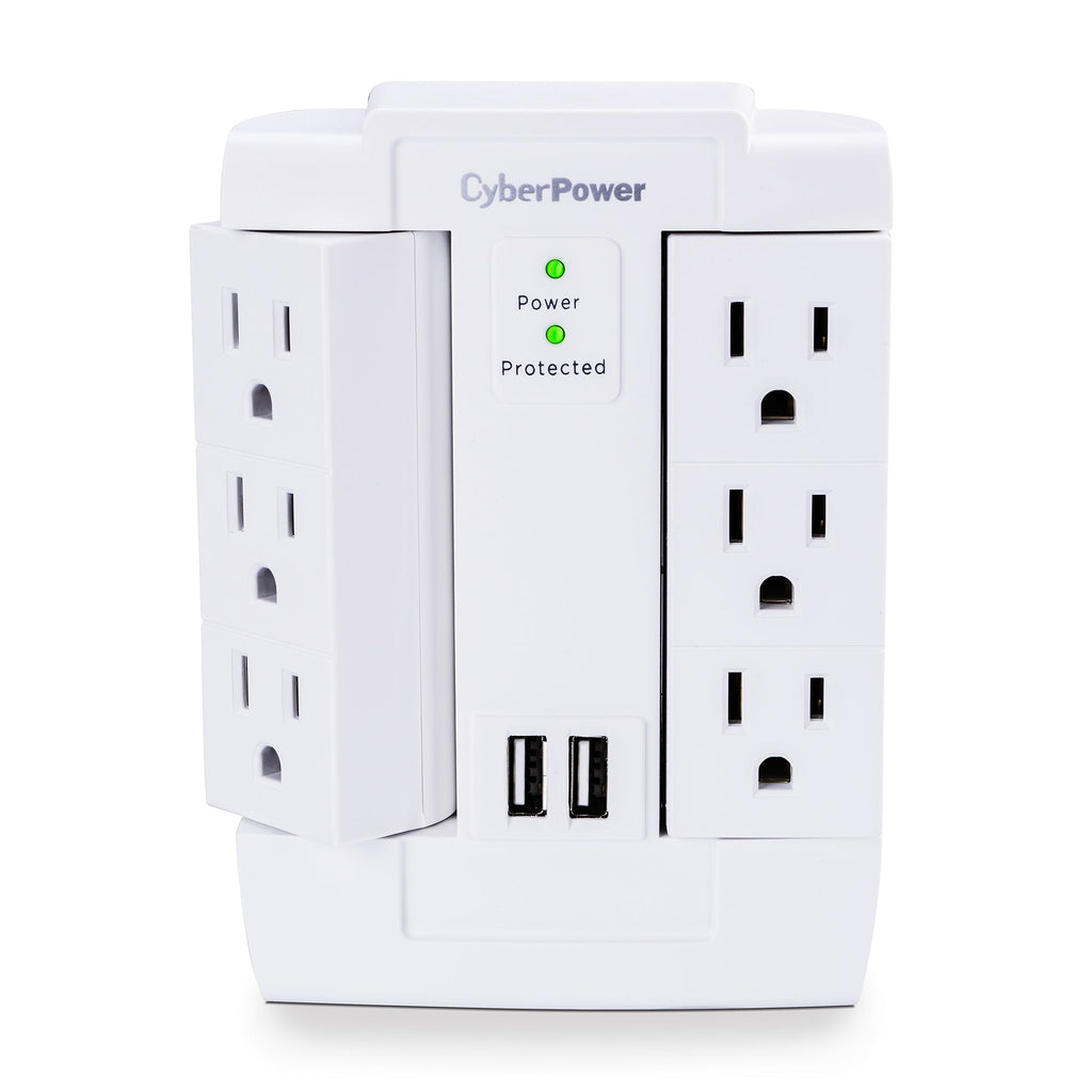 The CyberPower Professional Series CSP600WSURC2 Surge Protector is ideal for Home/Office protection with 1200 joules, 6 swivel outlets, 2 USB charge ports (2.4 Amps shared), and a convenient wall tap design. The surge protector is ideal for protecting personal computers, phones/fax/modems, printers, stereos, and other electronics. Its two USB are perfect for keeping tablets, smart phones, and other rechargeable electronics ready to use.