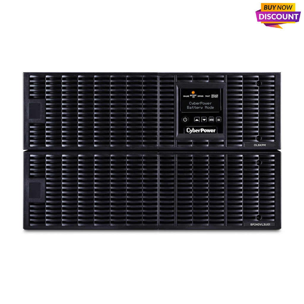 The CyberPower Smart App Online OL6KRT is a 6U rack/tower UPS with double-conversion. It provides sine wave output to multiple types of critical IT infrastructure requiring seamless power protection. The OL6KRT is generator compatible and delivers consistent 200-240 V power with zero-transfer time. Automatic-bypass ensures connected equipment continues to operate seamlessly when an overload or internal fault is detected.