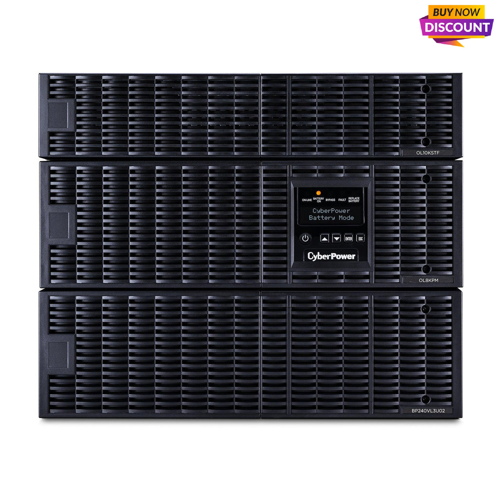 The CyberPower Smart App Online OL8KRTF is a combined 8U with a 6U rack/tower double-conversion UPS and a 2U step-down transformer to support 120 V and 200-240 V output requirements. It provides sine wave output to multiple types of critical IT infrastructure requiring seamless power protection. Generator-compatible, the OL8KRTF delivers consistent output power with zero transfer time. Automatic-bypass ensures connected equipment continues to operate seamlessly when an overload or internal fault is detected.