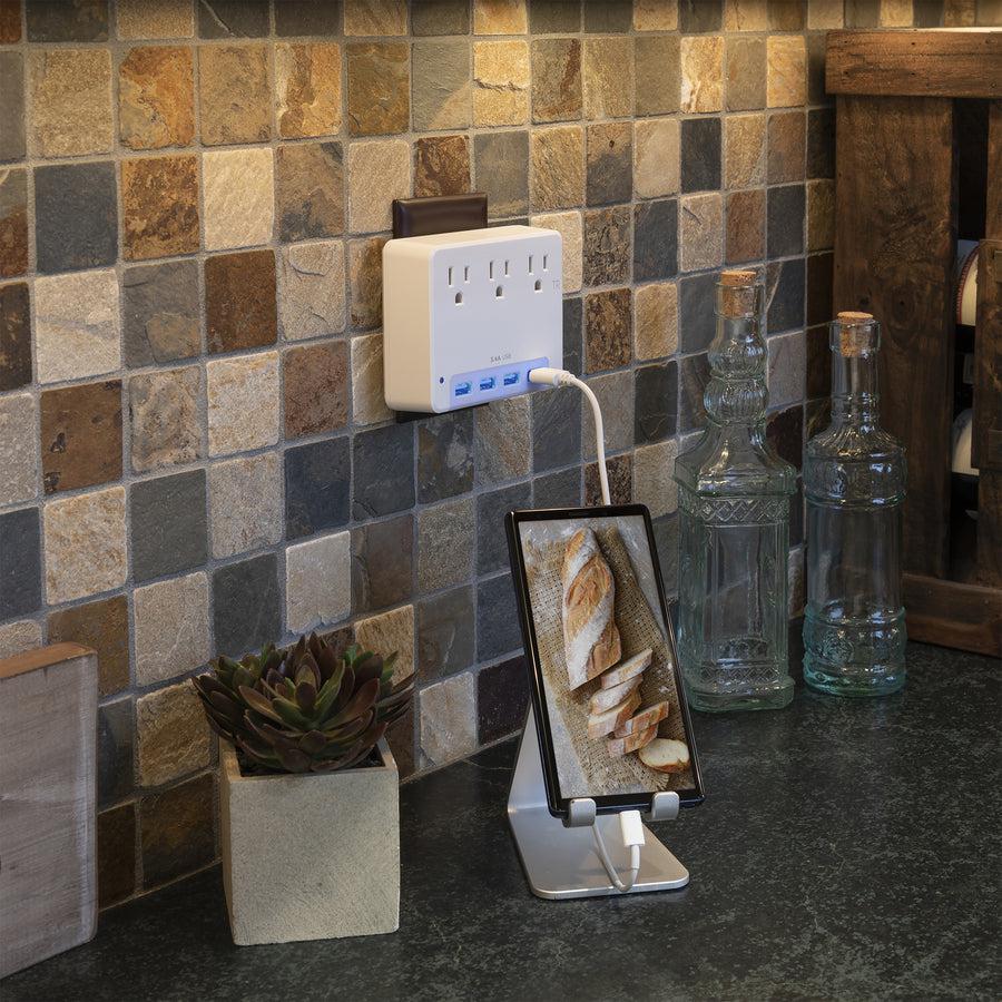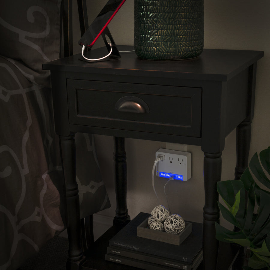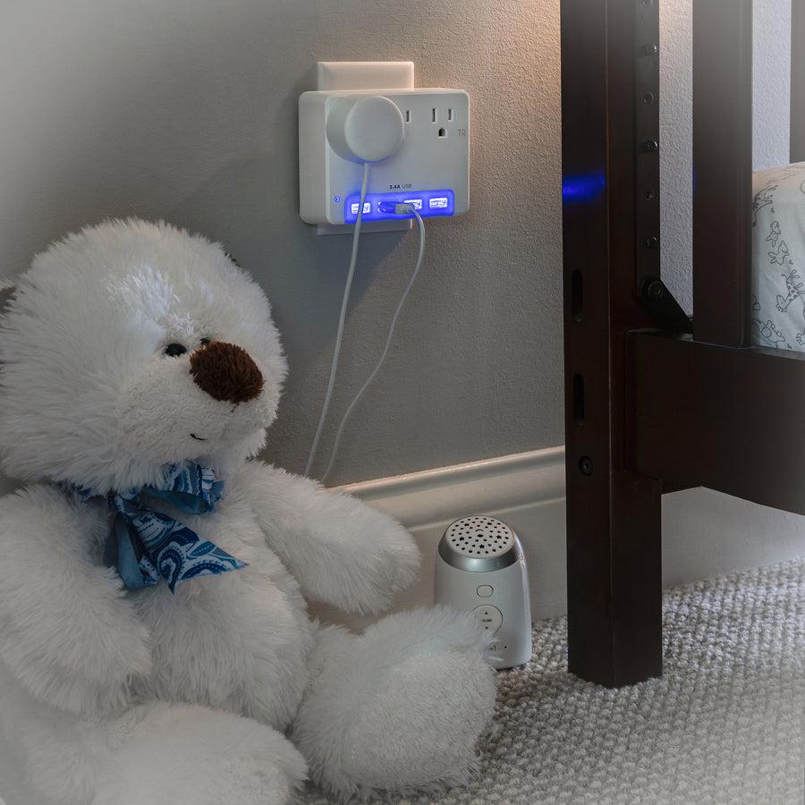 The CyberPower P3WUN Night Light Wall Tap features a light sensor and blue area LED lighting to make it easy to always quickly find the front-facing 3 power outlets and USB ports. The energy efficient LED is perfect for bedrooms, bathrooms, hallways – anywhere you’d like a night light and expanded power options. For nurseries, the tamper resistant outlets meet the latest child safety standards and the soft glow of the LED can serve as a soothing nightlight.