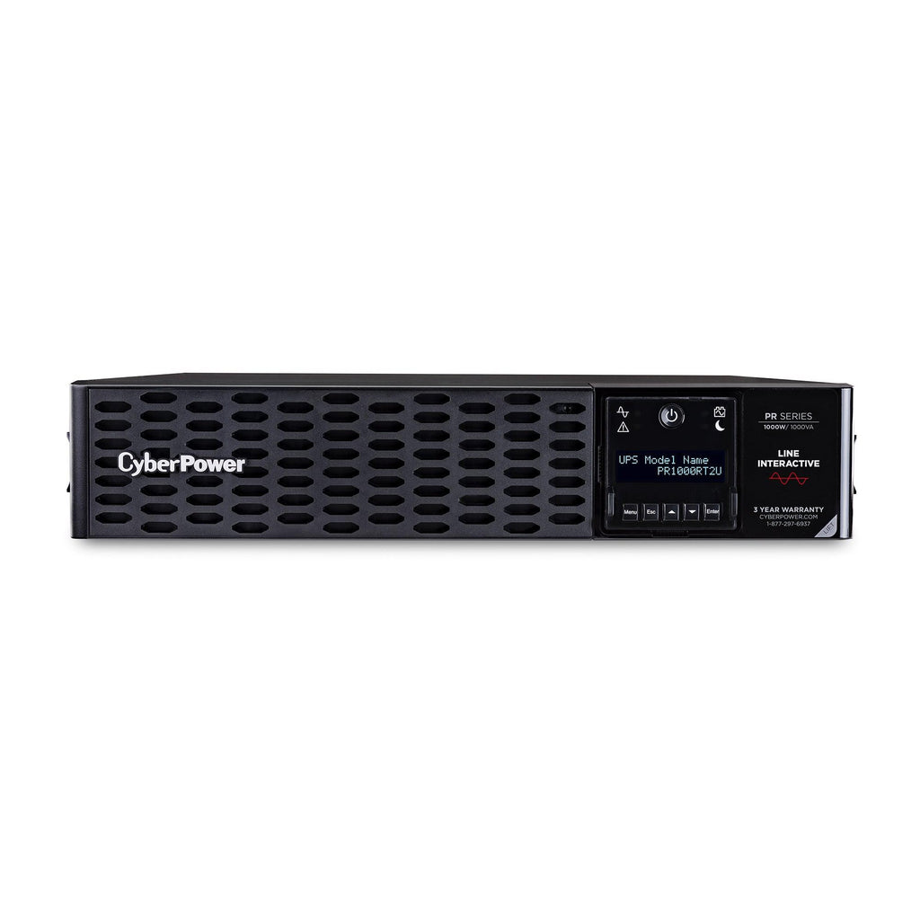 CyberPower PR1000RT2UN. UPS topology: Line-Interactive, Output power capacity: 1 kVA, Output power: 1000 W. AC outlet types: NEMA 5-15R, Power plug: NEMA 5-15P, AC outlets quantity: 8 AC outlet(s). Battery technology: Sealed Lead Acid (VRLA), Battery capacity: 7 Ah, Battery voltage: 12 V. Form factor: Rackmount/Tower, Product colour: Black, Rack capacity: 2U. Width: 433 mm, Depth: 412 mm, Height: 86.5 mm