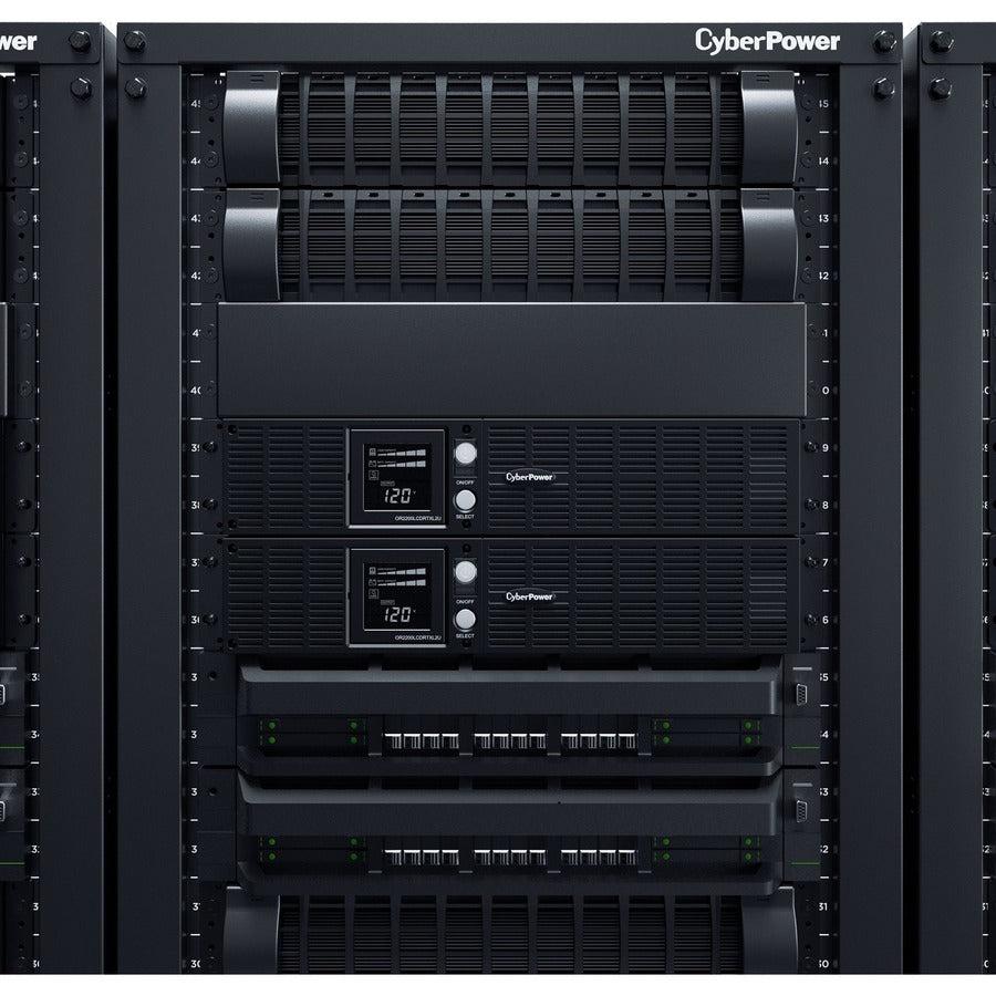 CyberPower Smart App Intelligent LCD. Output power capacity: 2.19 kVA, Output power: 1650 W, Input operation voltage (min): 90 V. AC outlet types: NEMA 5–20R, AC outlets quantity: 8 AC outlet(s). Battery technology: Sealed Lead Acid (VRLA), Typical backup time at full load: 6 min, Typical backup time at half load: 14 min. Form factor: Rackmount/Tower, Product colour: Black, Rack capacity: 2U. Width: 431.8 mm, Depth: 477.5 mm, Height: 88.9 mm
