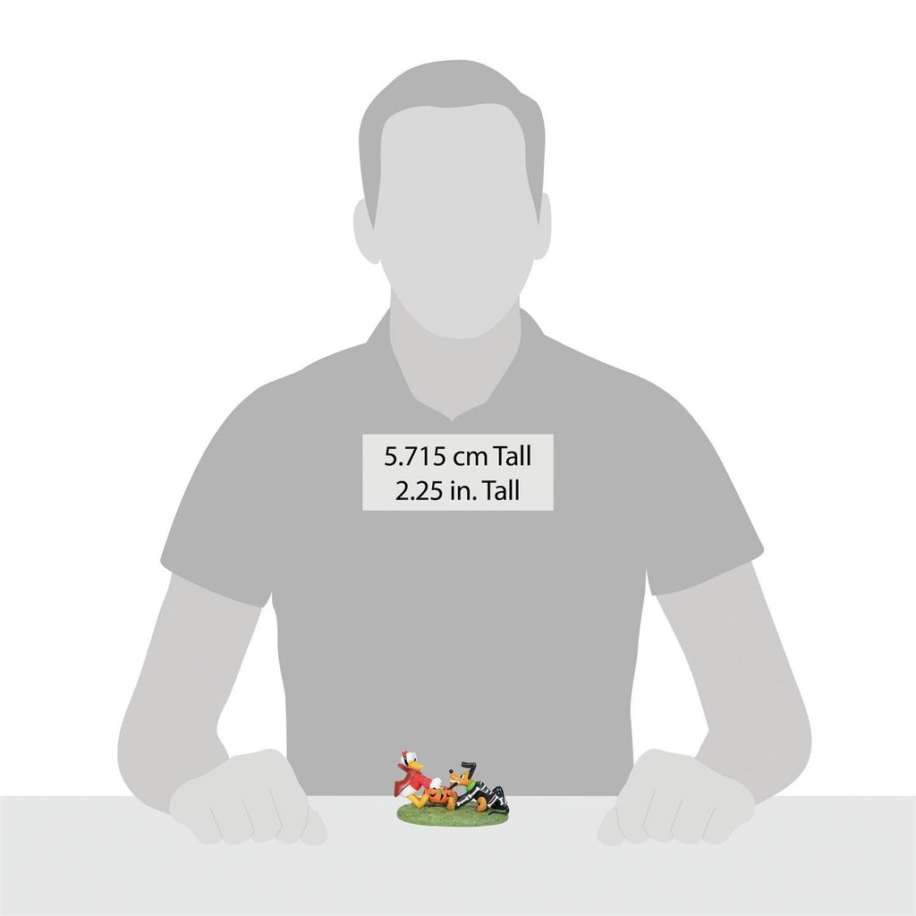 Dressed as a devil, Donald pulls while Pluto, dressed in a skeleton costume, hangs on to the pumpkin filled with candy. Who is going to win? Why don't you share?