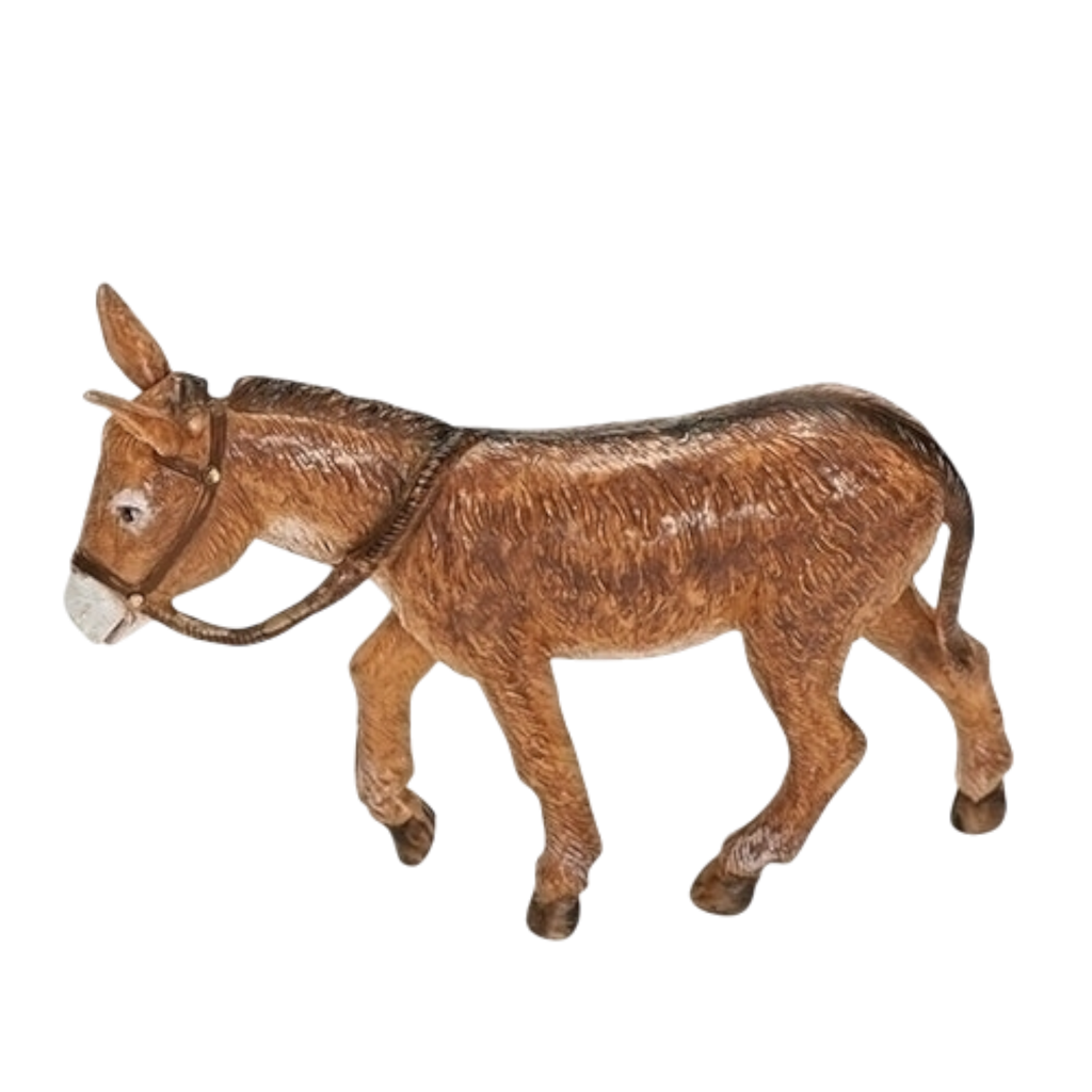 Crafted in Italy by Fontanini, known for their exceptional attention to detail, this piece features a lifelike design with a rich brown coat and a gentle expression. The donkey's presence in nativity scenes serves as a reminder of the simple yet profound role that he played. After the Donkey demonstrated its love and loyalty to Jesus by never leaving His side through trial and suffering, God granted it with a cross on its back, as a reward, for all to see. As you celebrate the holiday season, this figurine can serve as a beautiful representation of the spirit of giving and the importance of every creature in the tapestry of life.